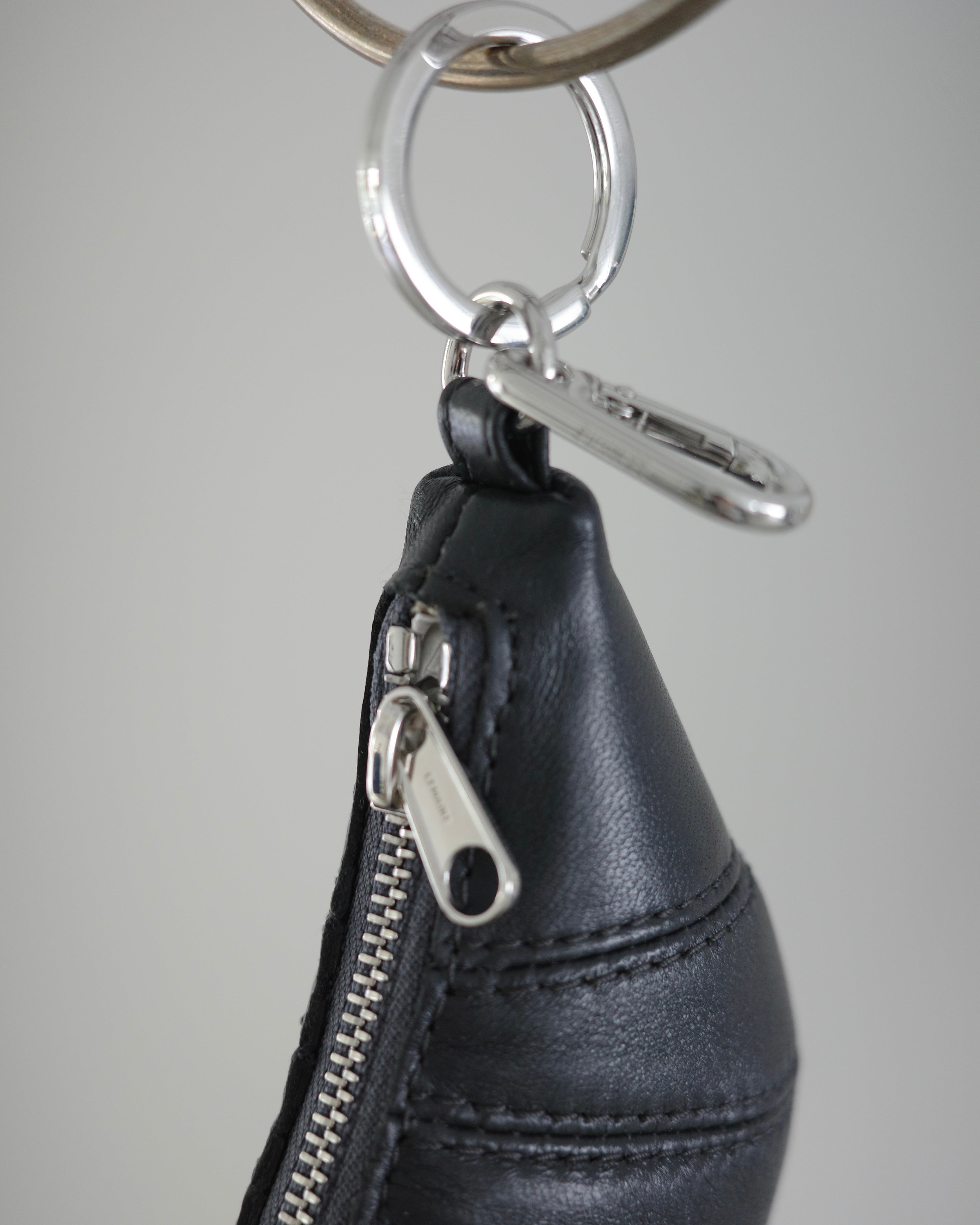 リングに鍵をまとめられるだけでなく、ミニチュアサイズのジッパー付きボディにはAirpods Pro 2ケースを収納でき、バッグやパンツのベルトループに付けて、遊び心と実用性を兼ね備えたチャームとして活躍します。
