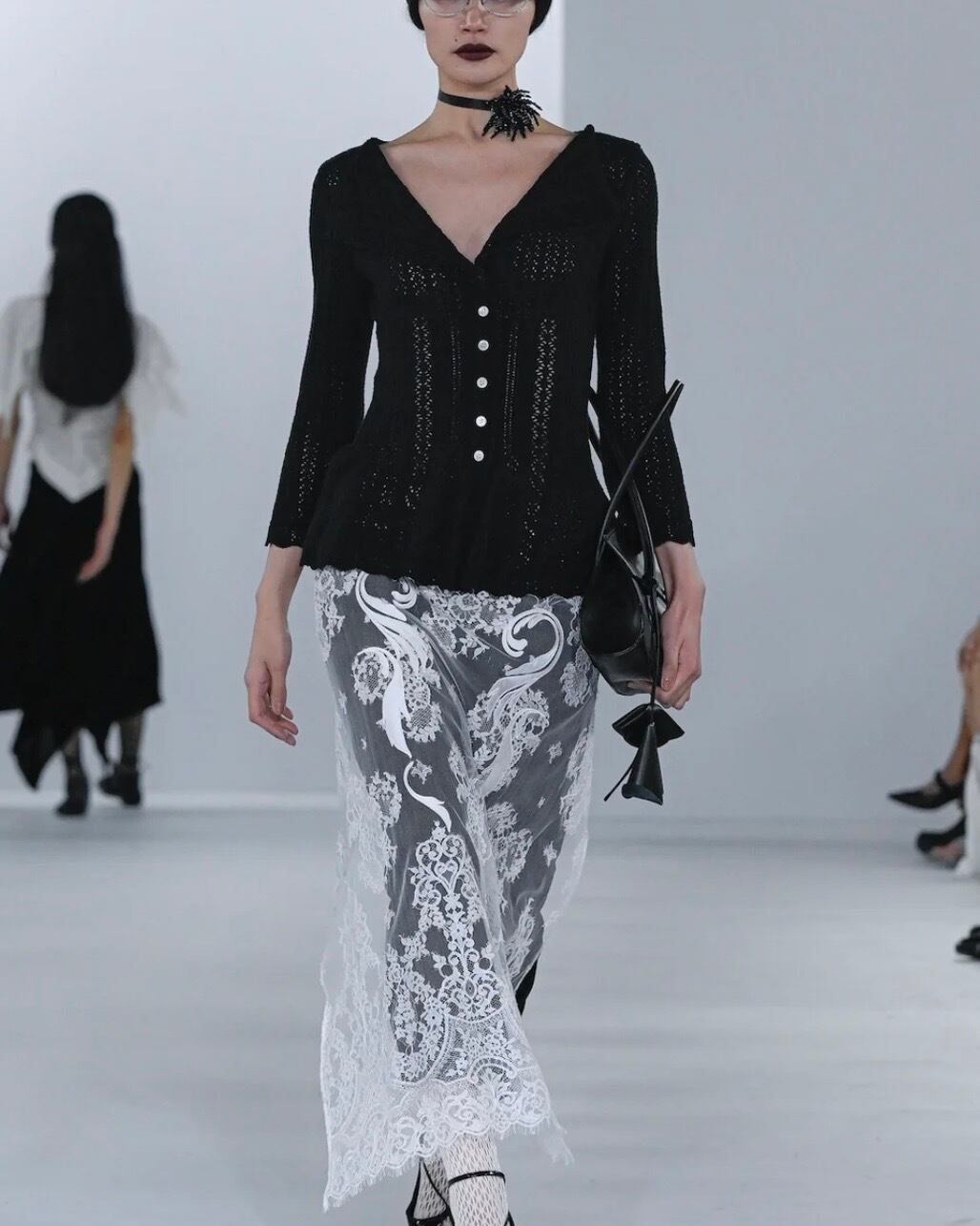 FETICO / BOUCLÉ KNIT LACE CARDIGAN