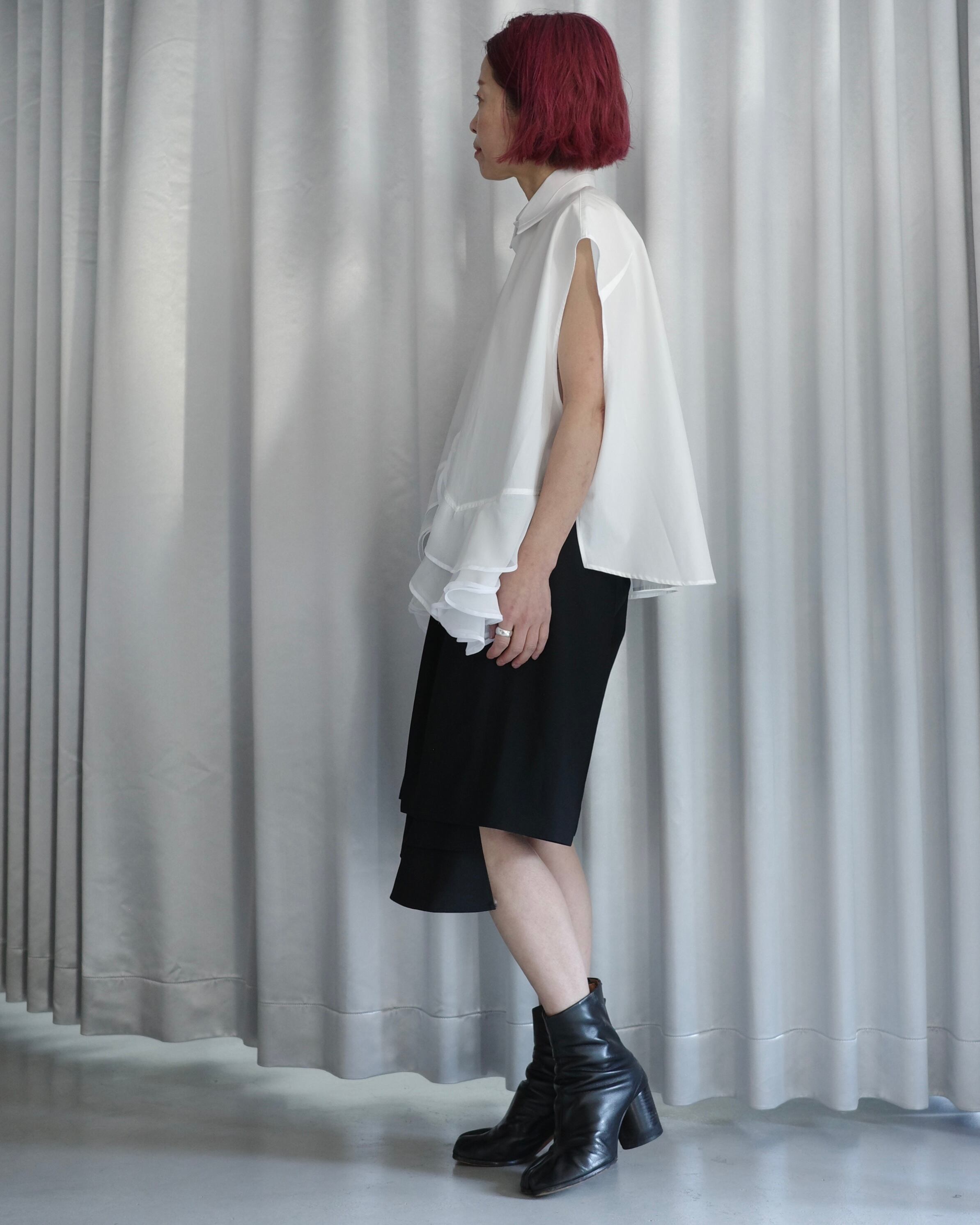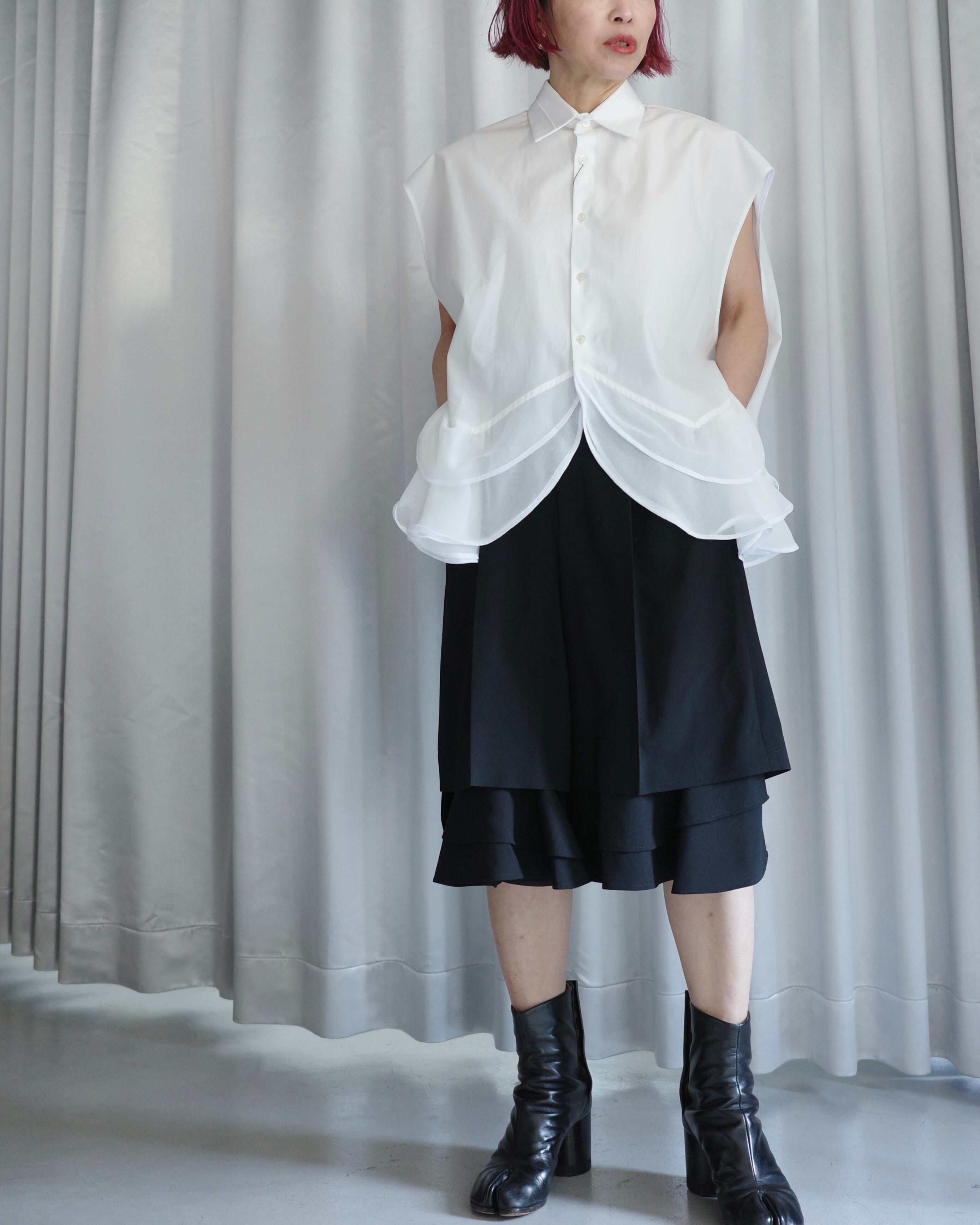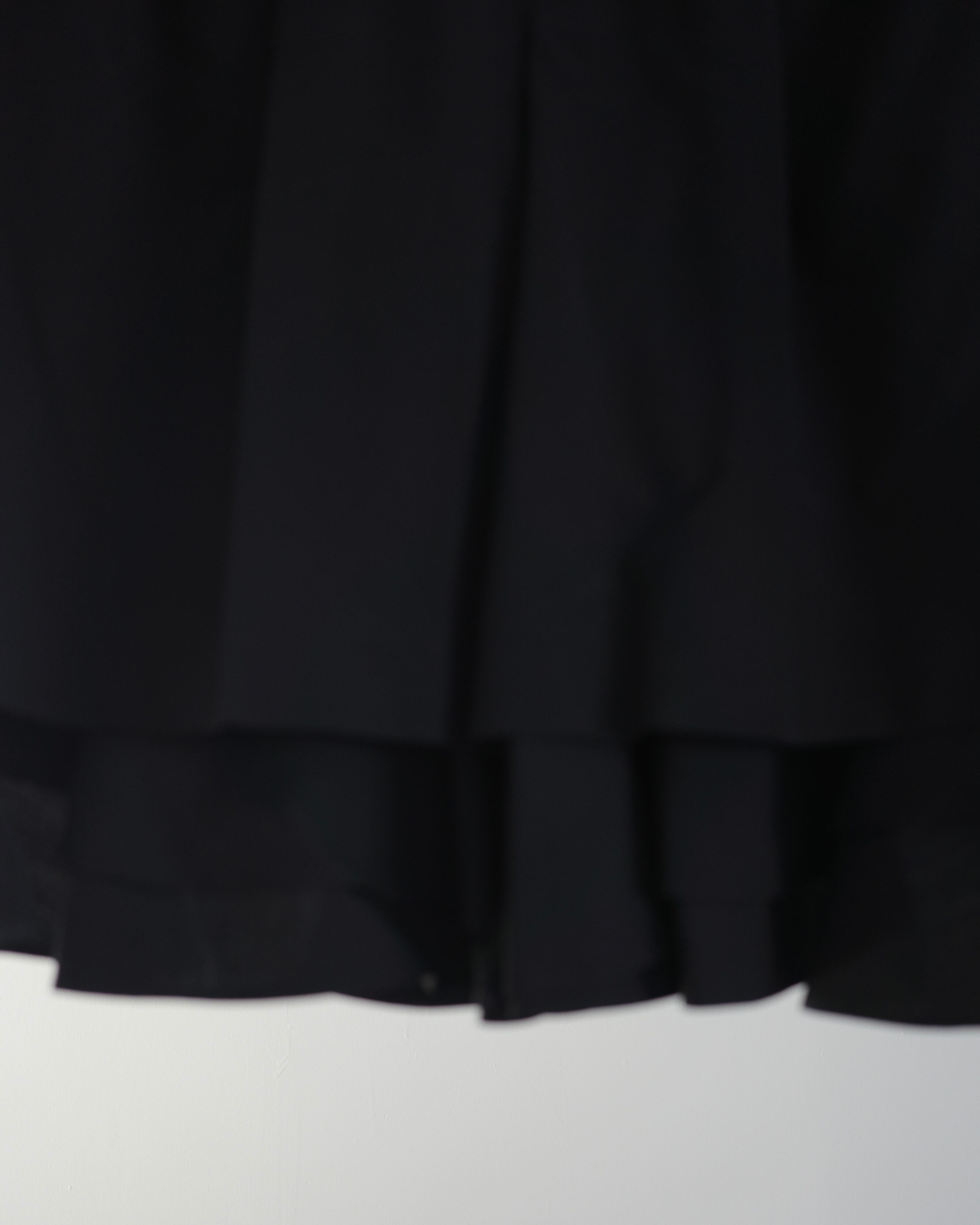 前裾に2段のフリルを施し、動くたびにさりげなく個性を振りまくデザインに昇華したのハーフパンツ。