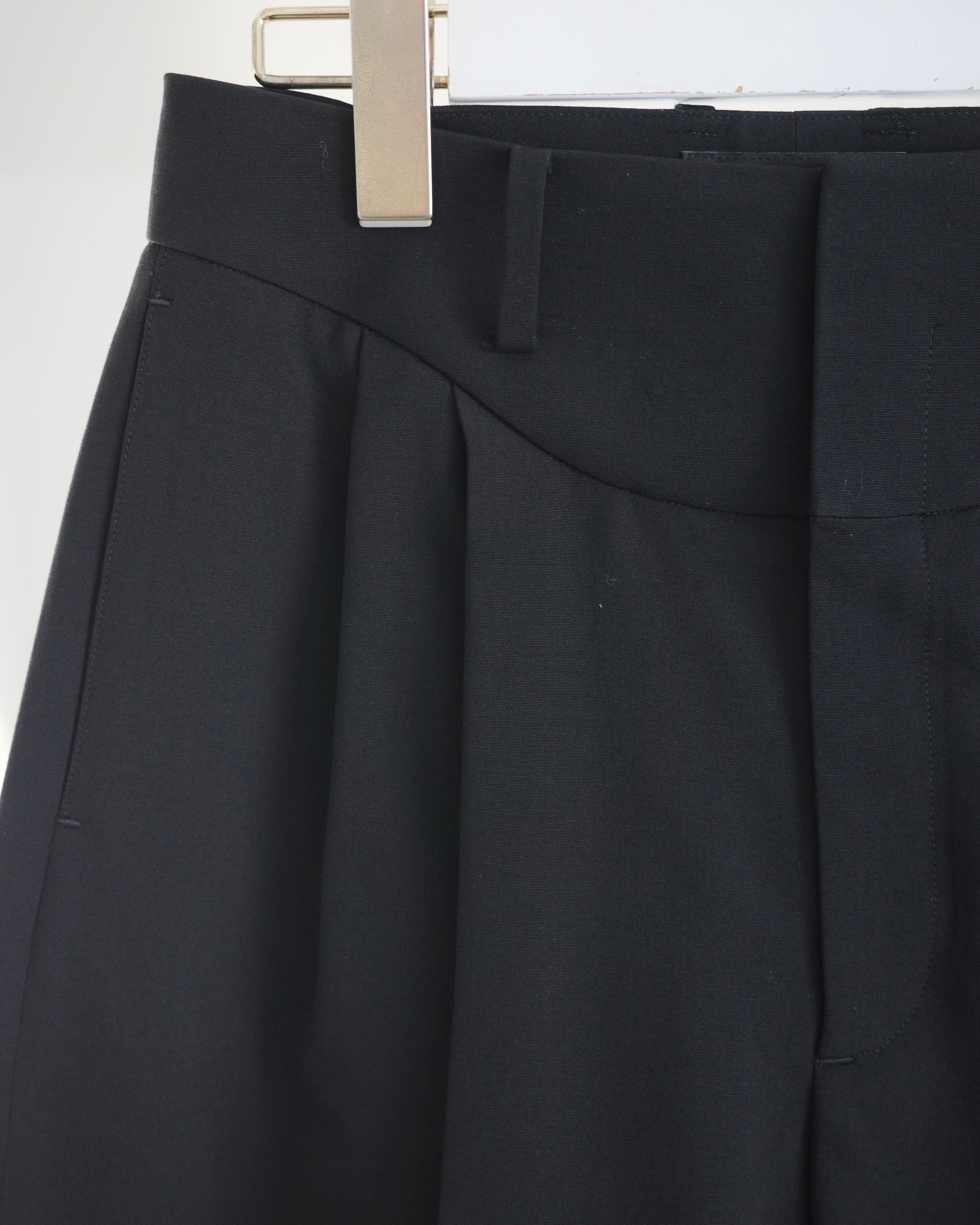 フロントに2タック入りのエフォートレスなシルエットで、シックなブラックが大人のコーディネートに取り入れやすいアイテムです。