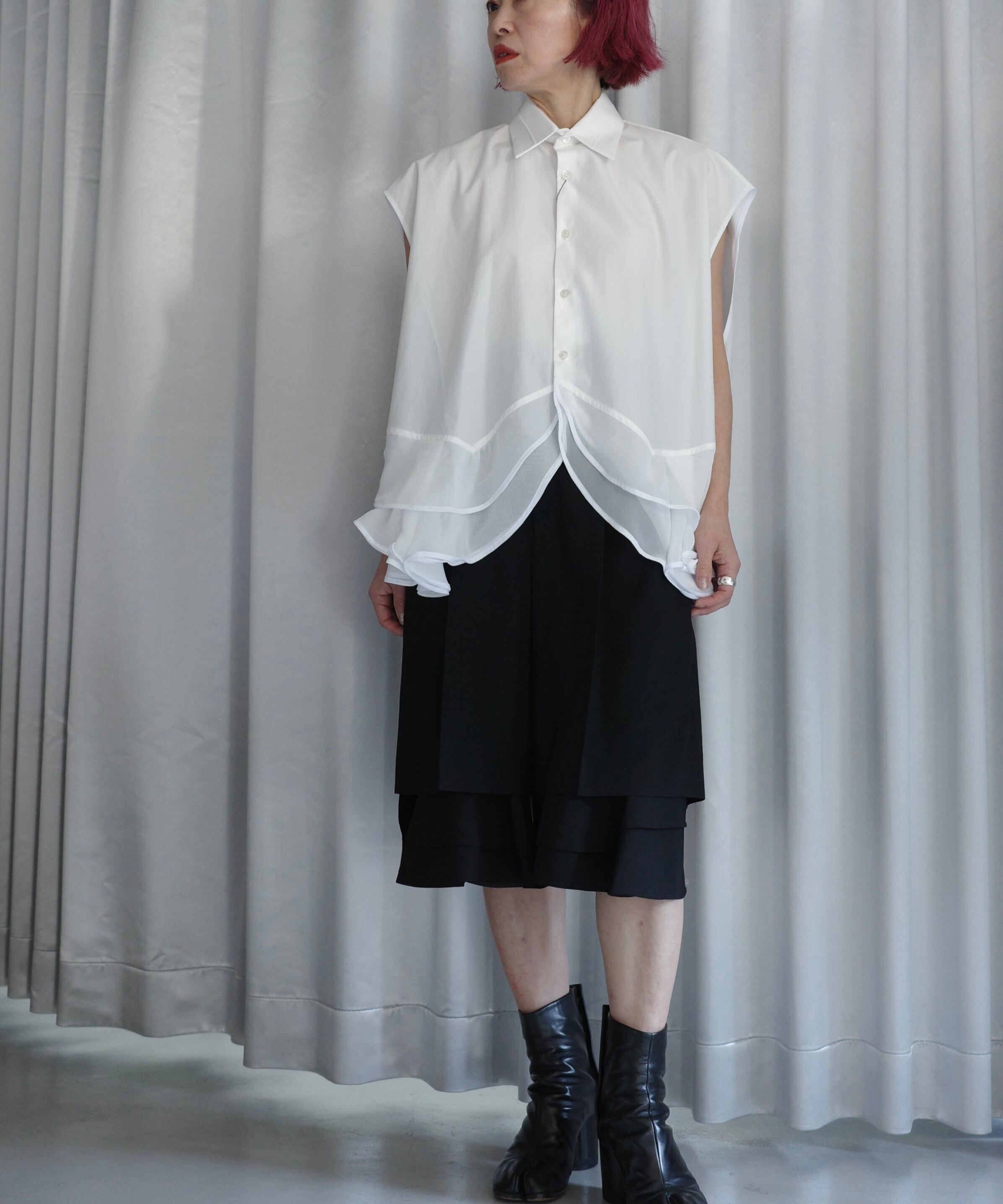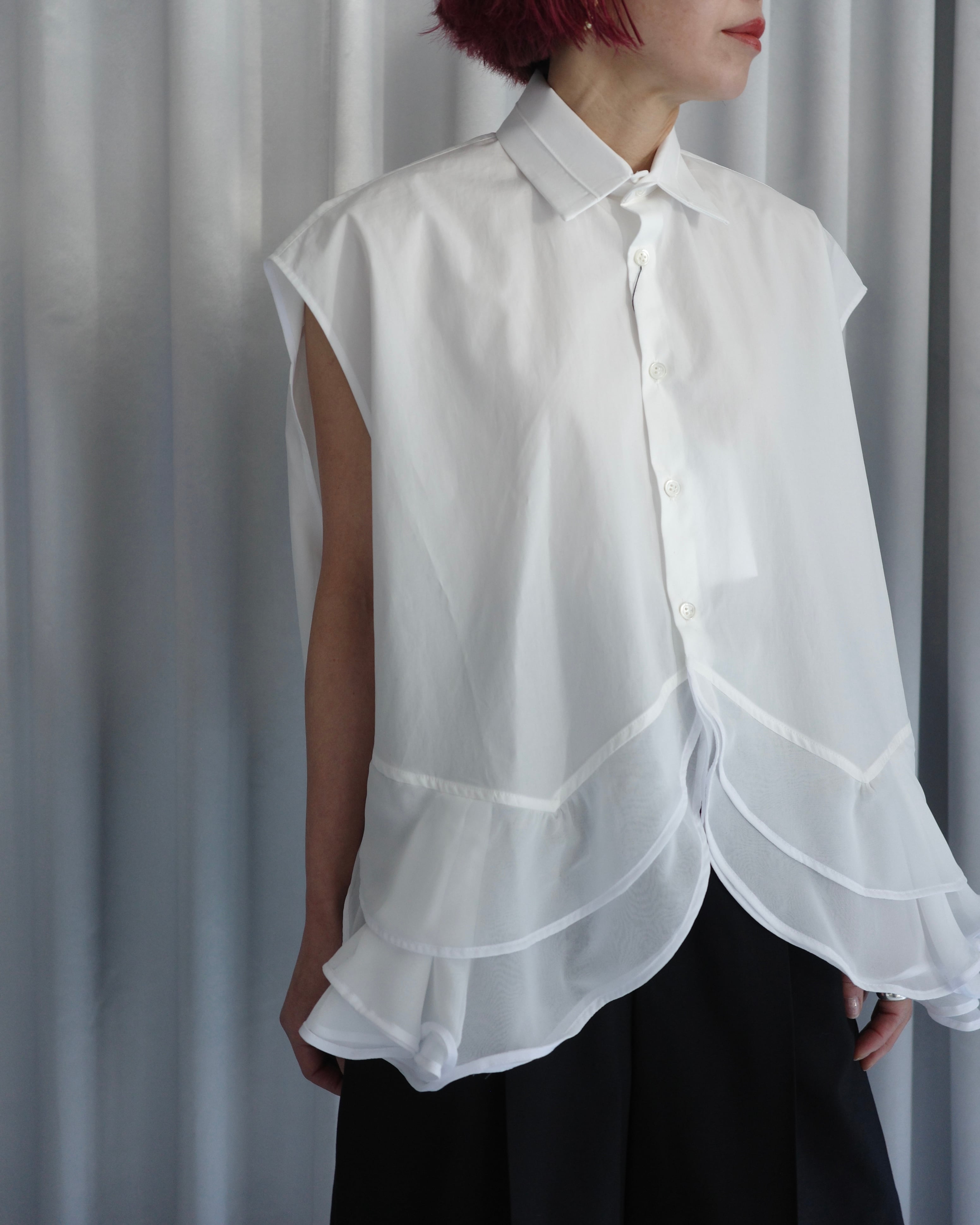 GURTWEIN / Organic cotton poplin zigzag ruffled boxy blouse