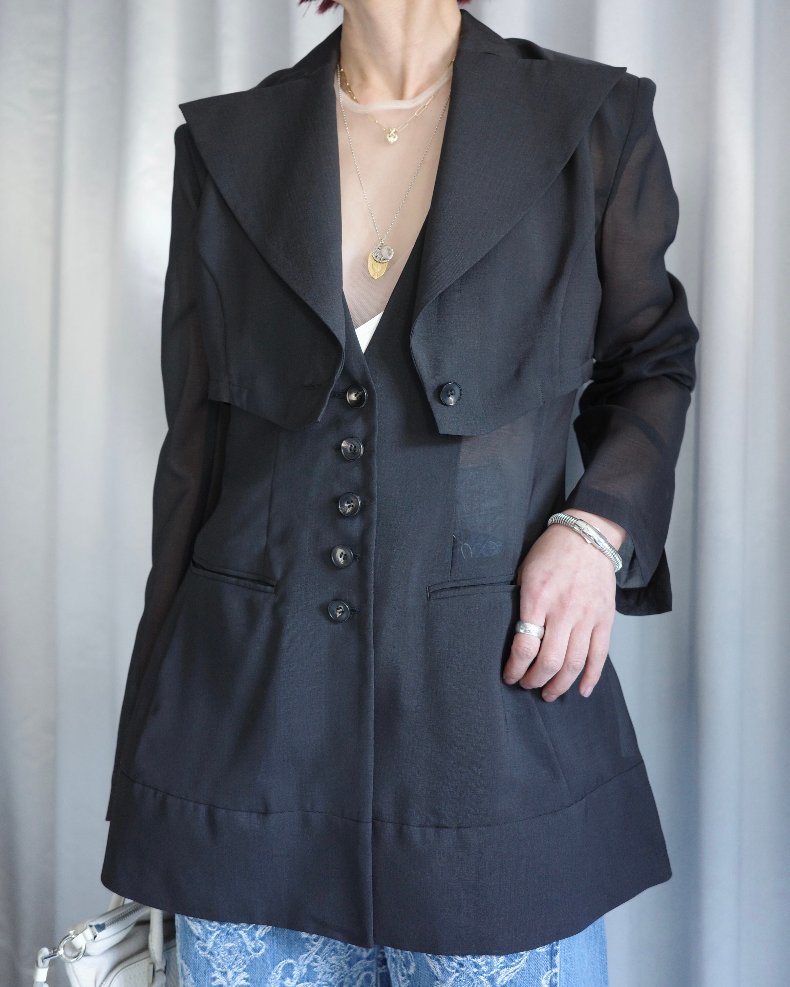 38 : バスト97cm 肩幅41.5cm 着丈74㎝ 袖丈61cm バスト(ベスト)91㎝ ウエスト(ベスト)78㎝
