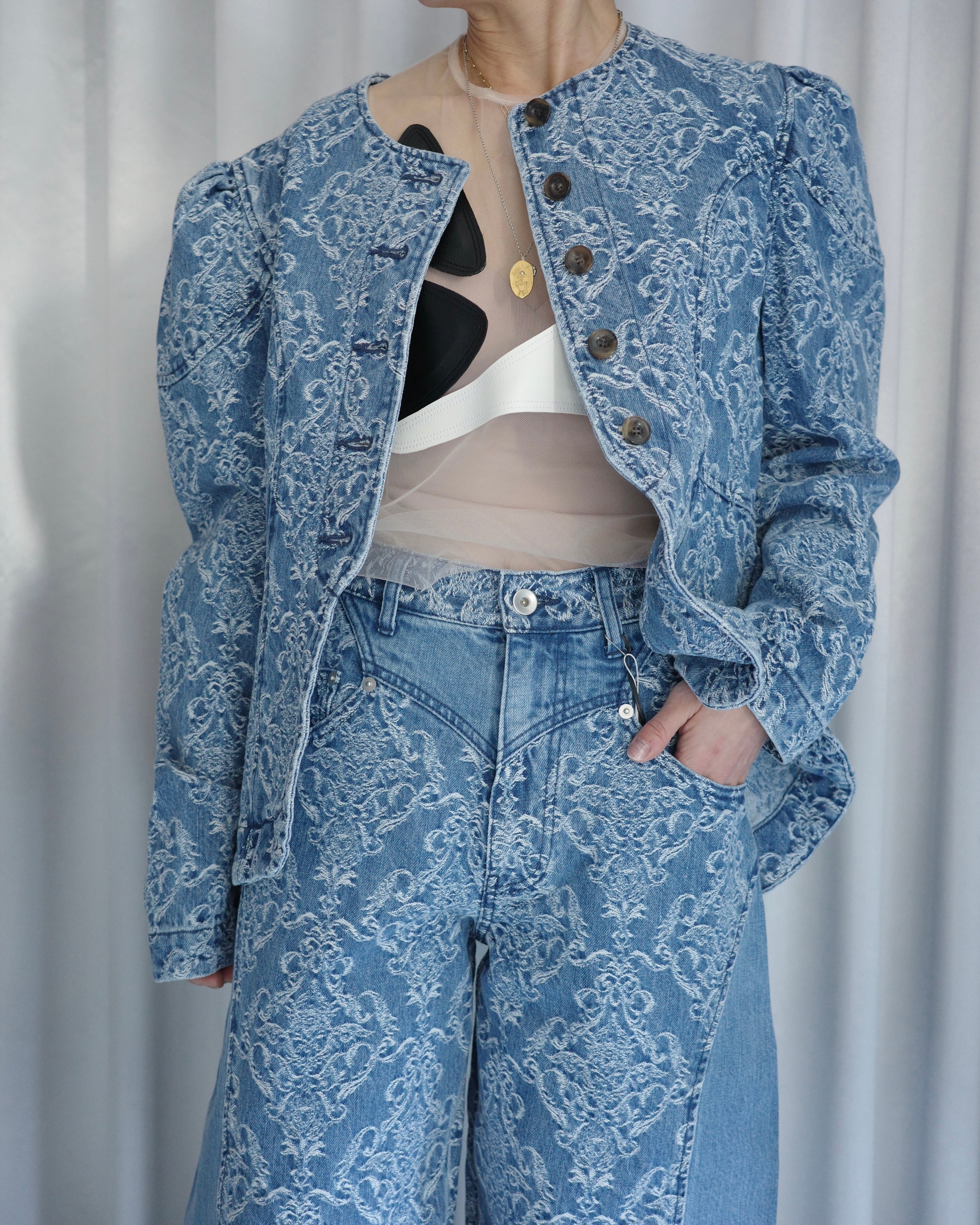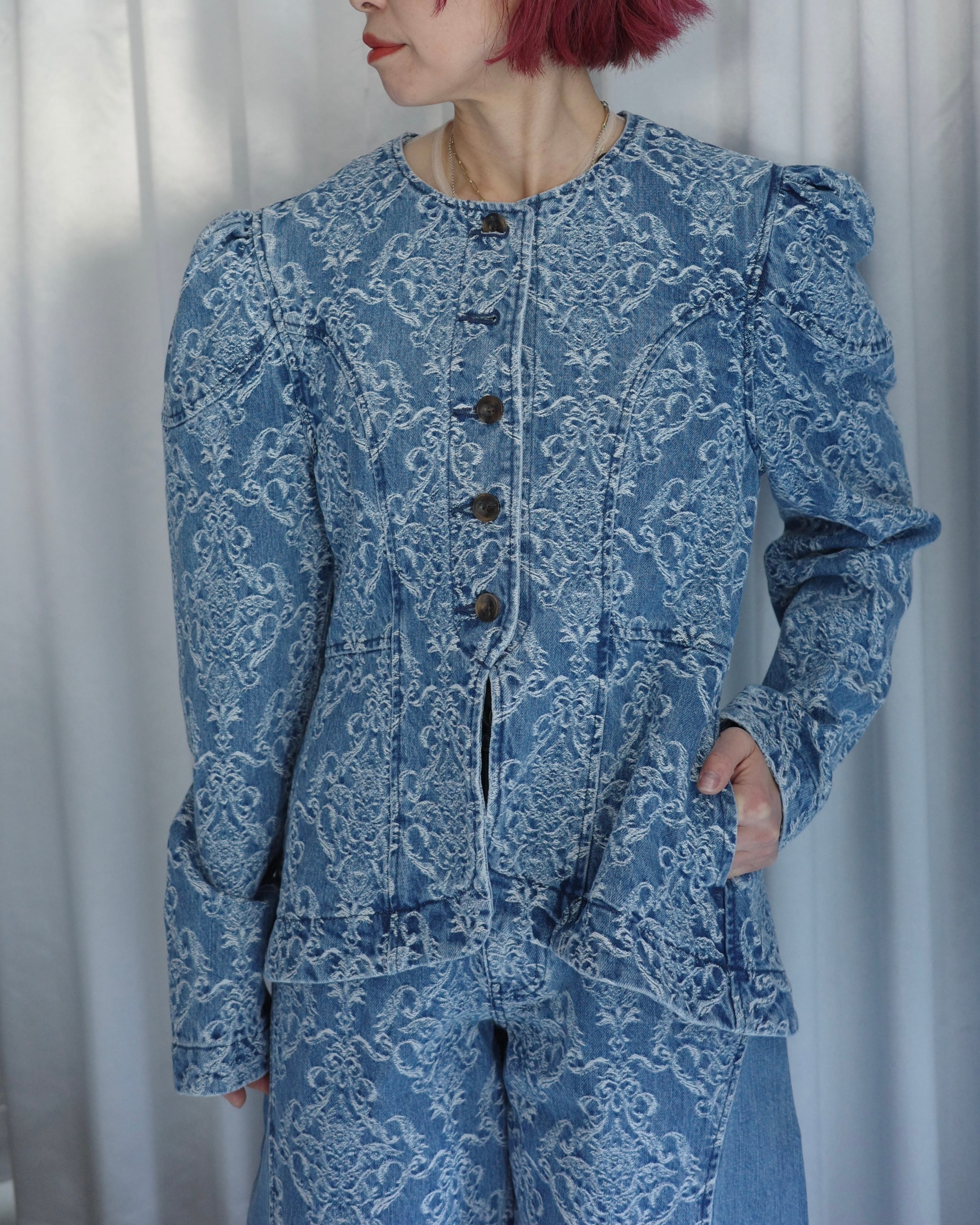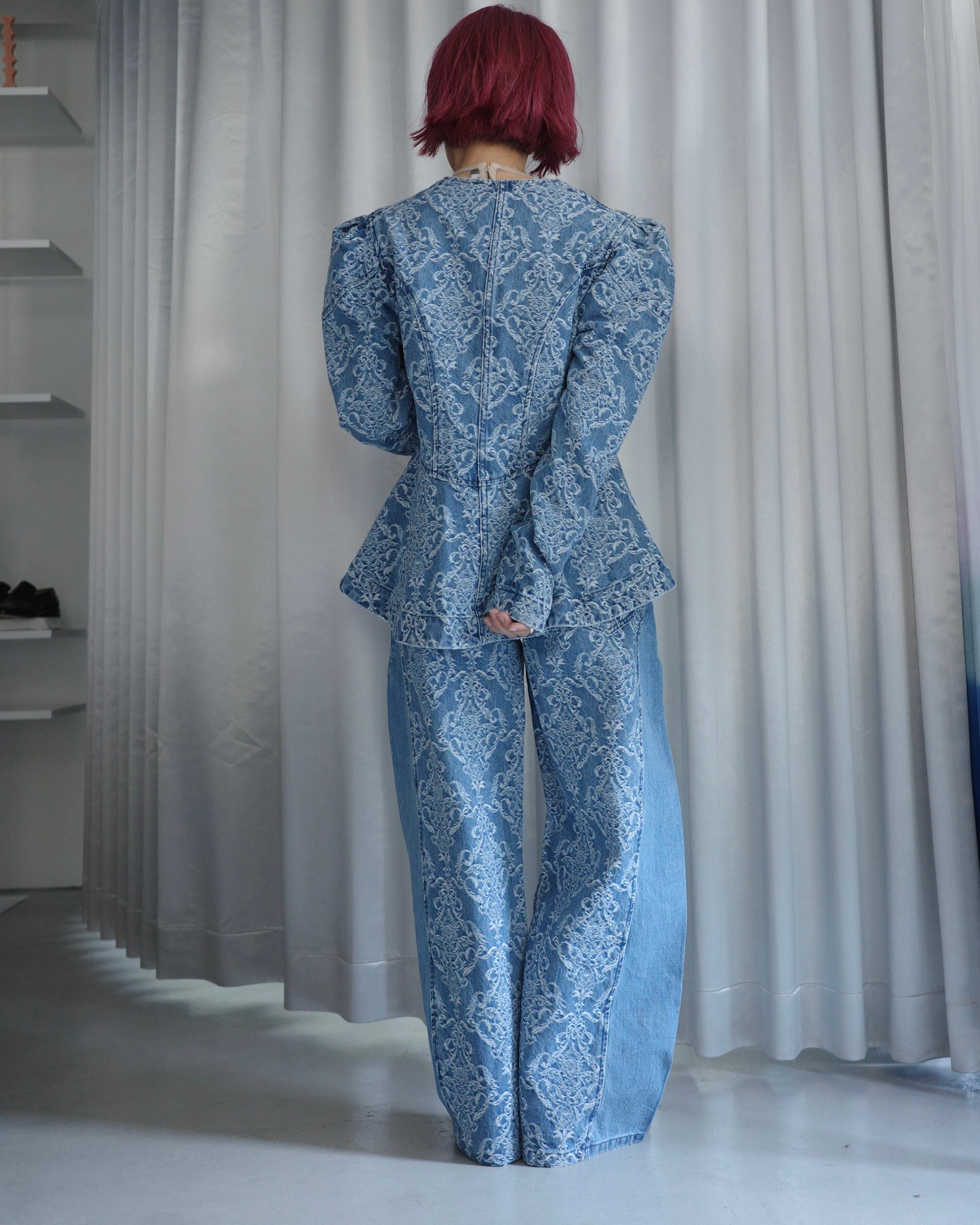 [DAMASK JACQUARD DENIM PEPLUM JACKET」