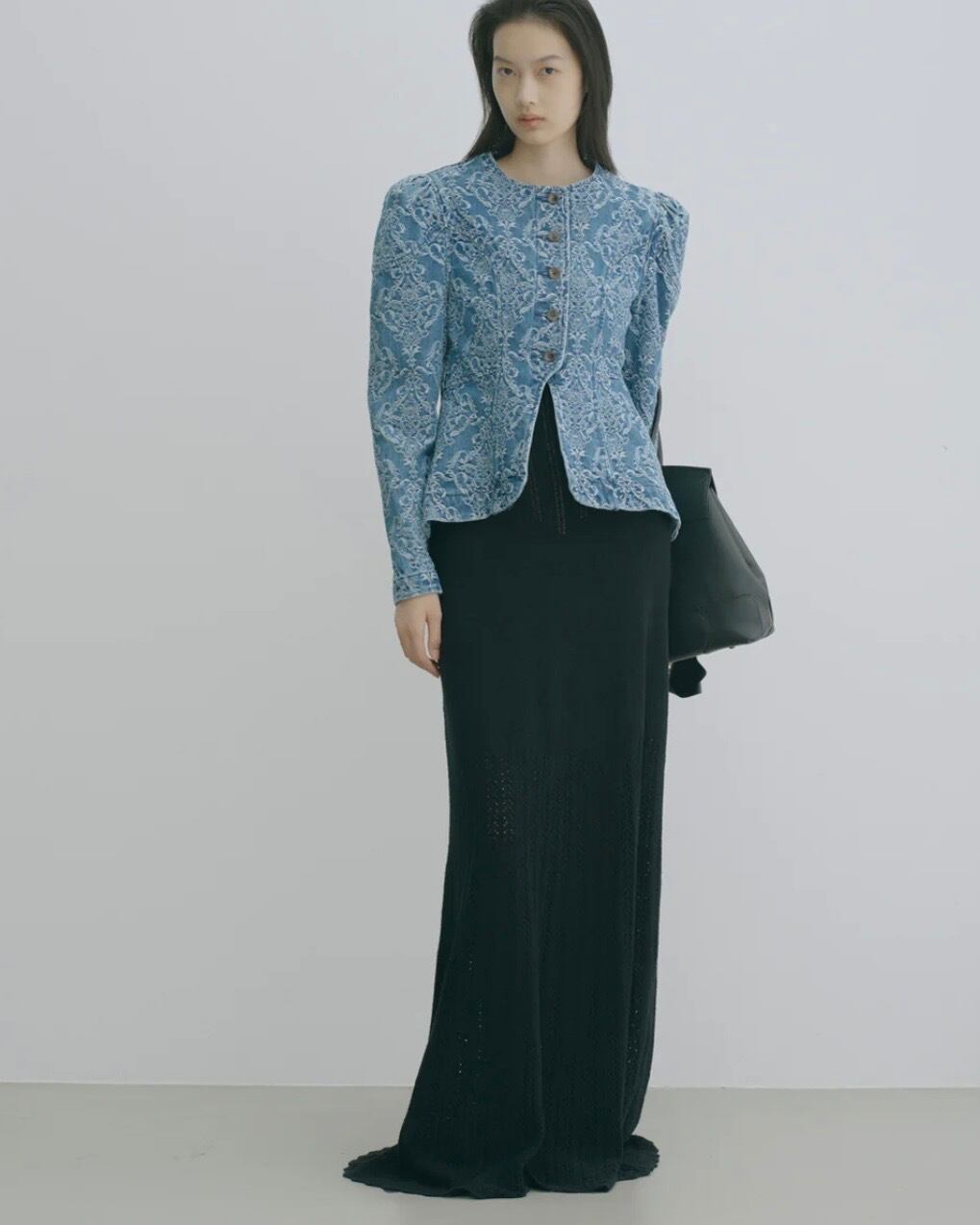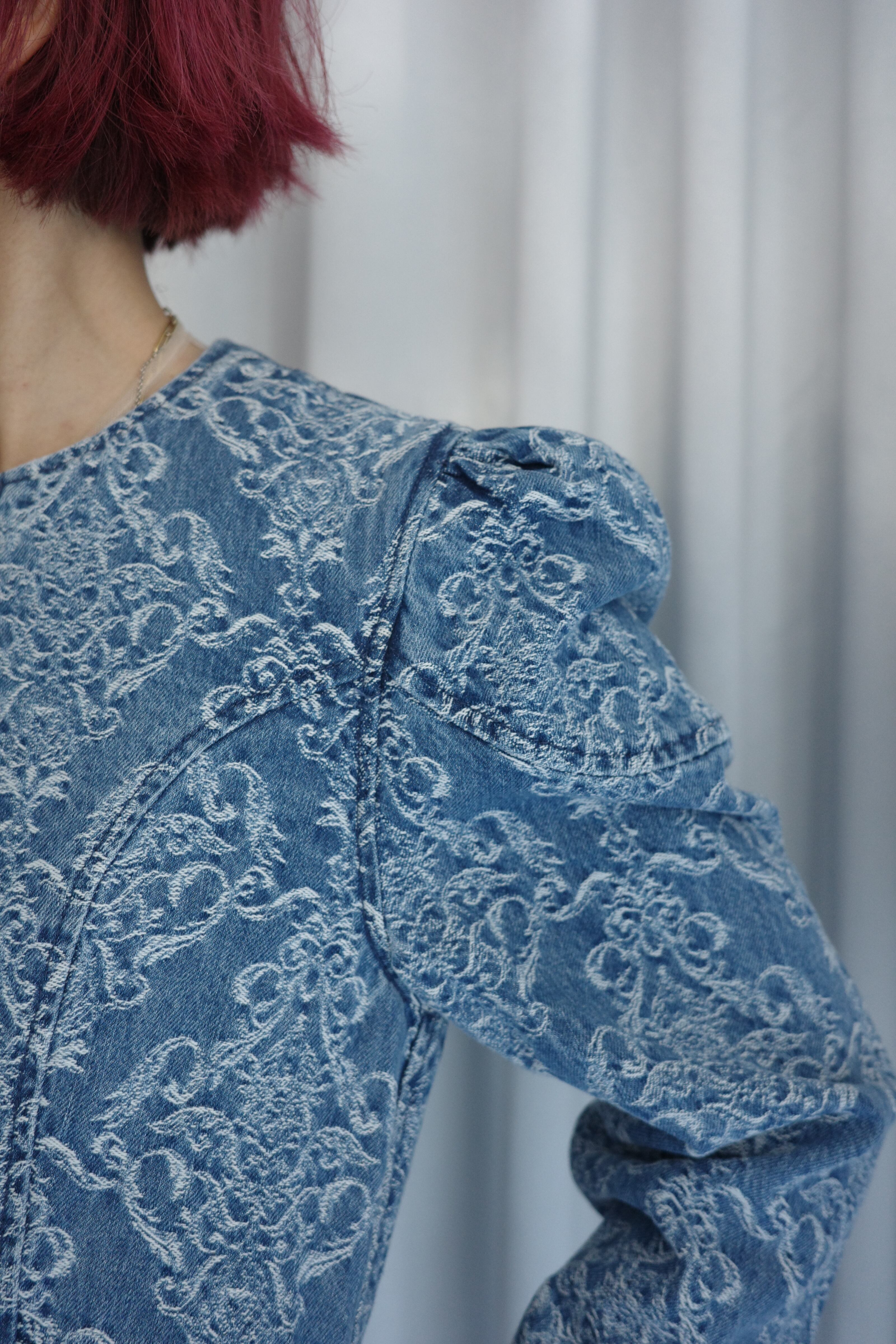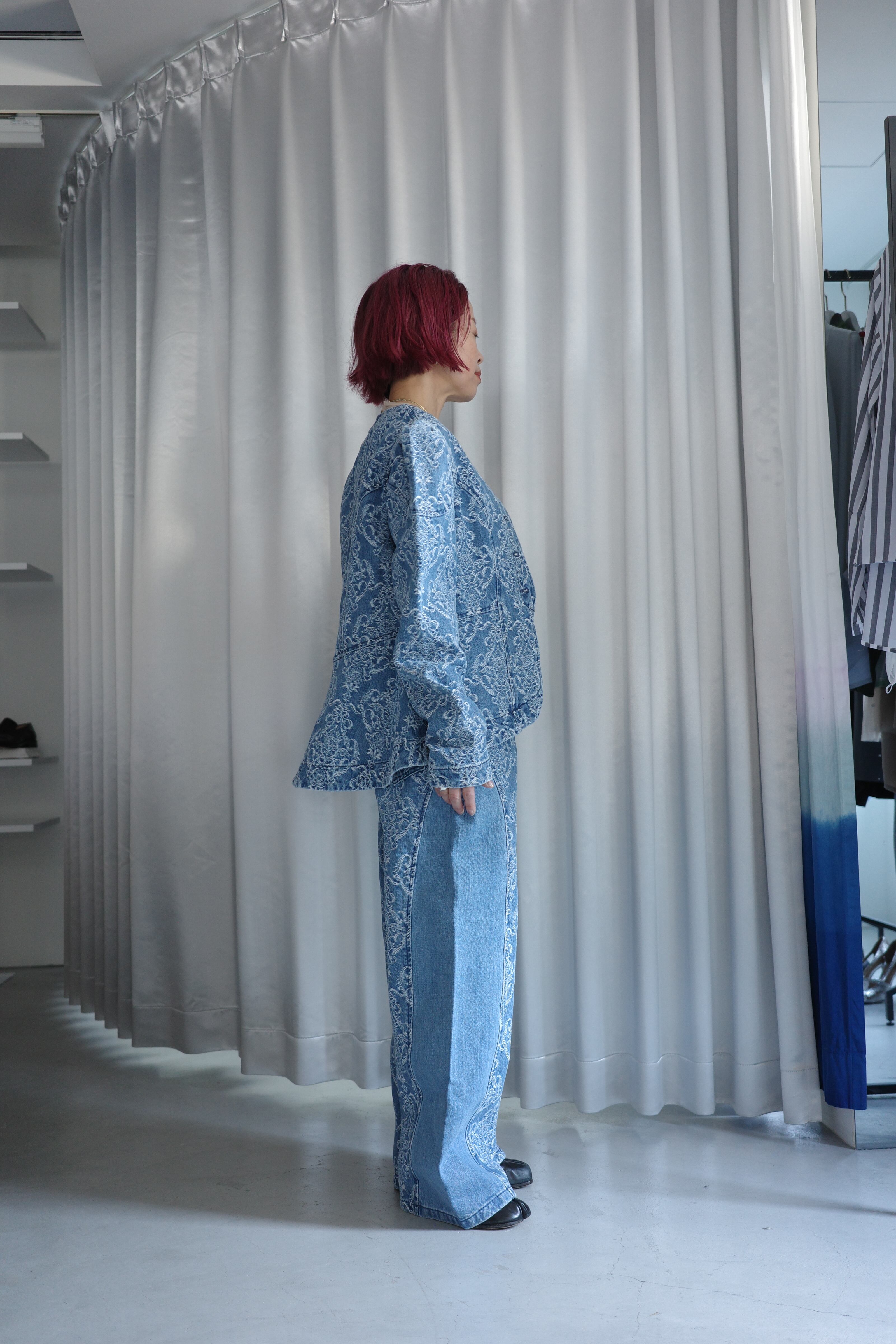 [DAMASK JACQUARD DENIM PEPLUM JACKET」