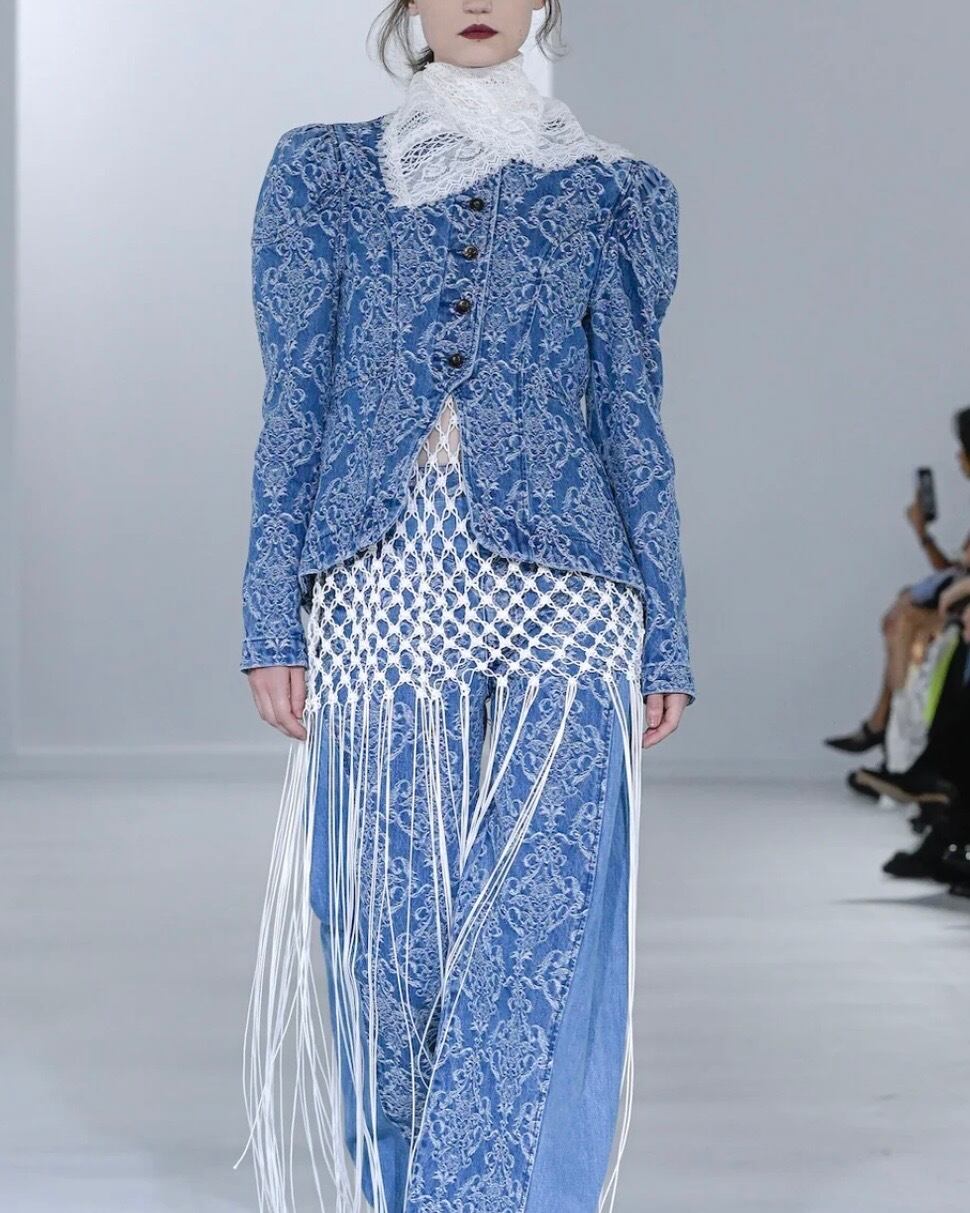 FETICO / DAMASK JACQUARD DENIM PEPLUM JACKET