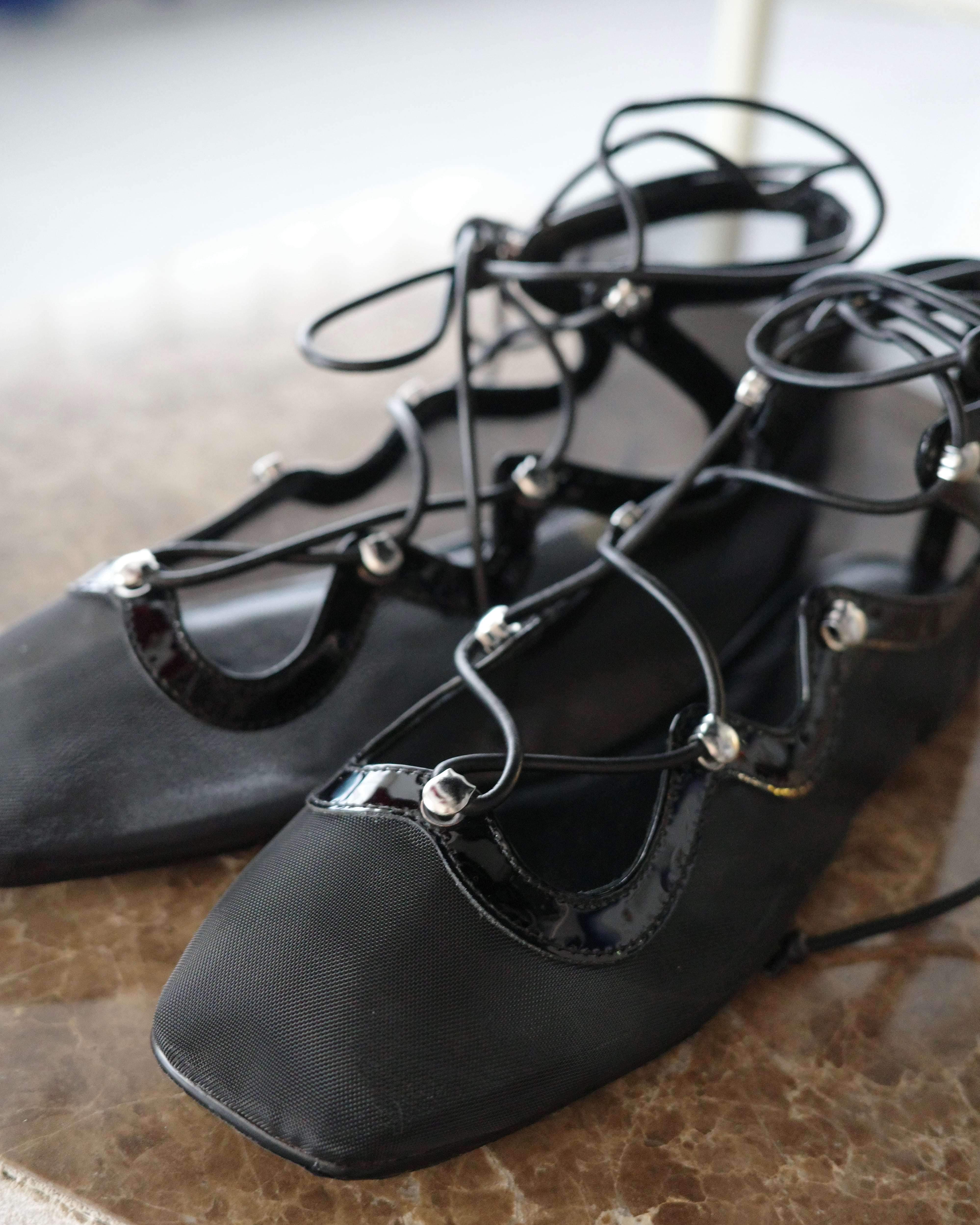 [SHEER LACE UP PUMPS」