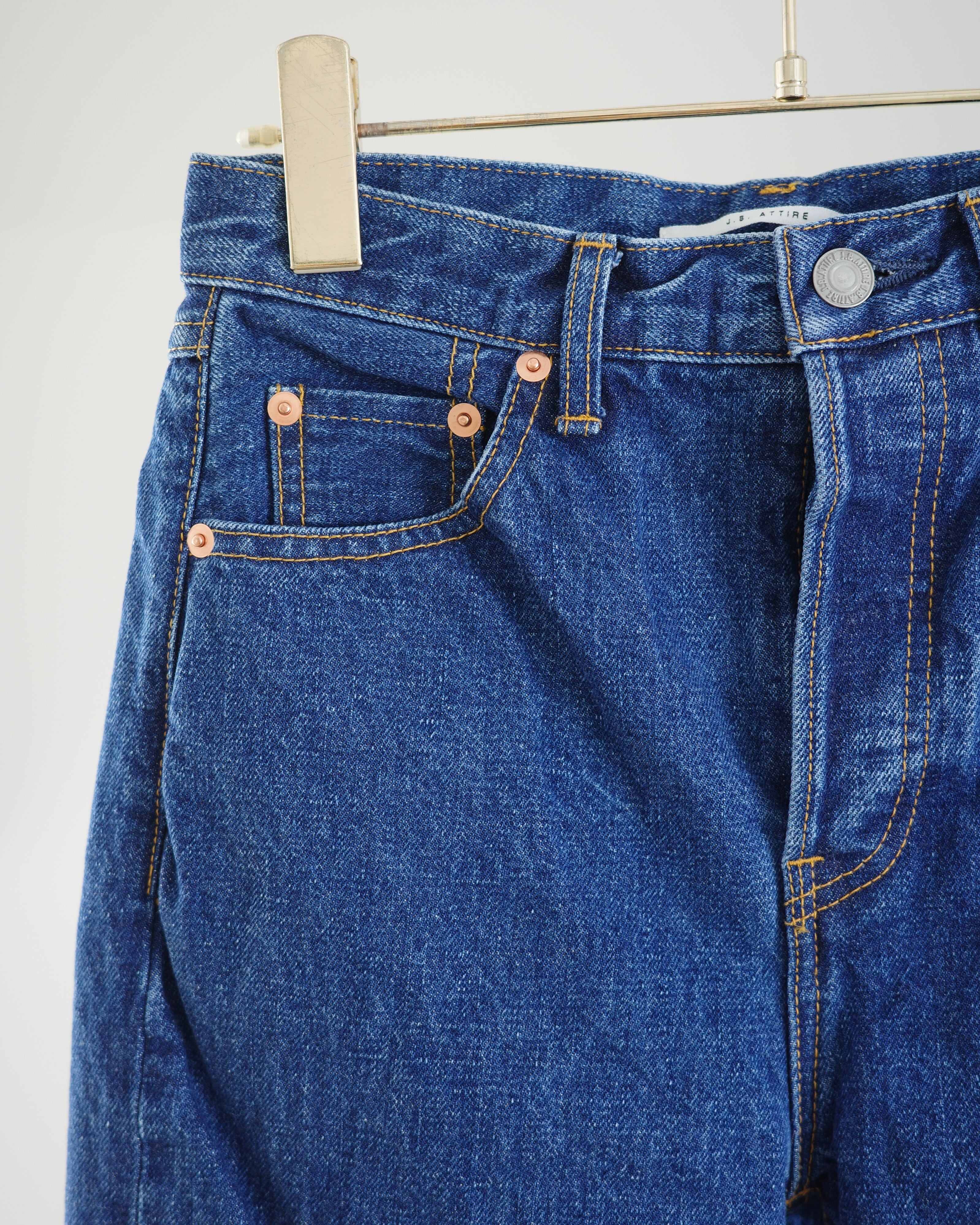 歴史のある王道ジーンズを女性の体型に合わせて改良したストレートシルエットのデニムパンツです。ヒップ部分に施したダーツで立体感のある綺麗なシルエットを実現。程よいフィット感があり、どんな体型の方にも合うようデザインされています。