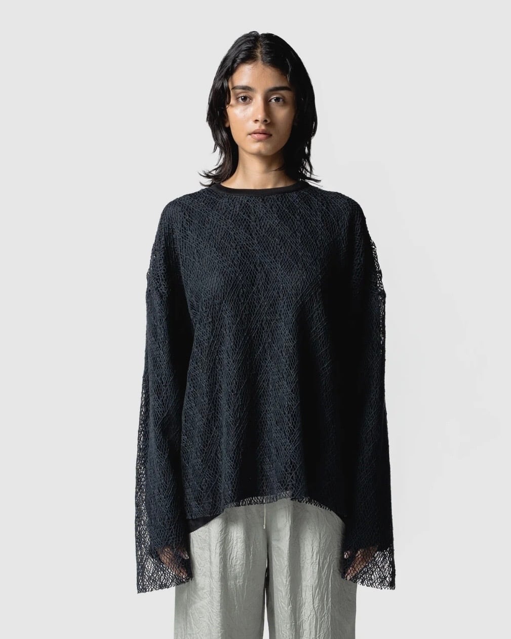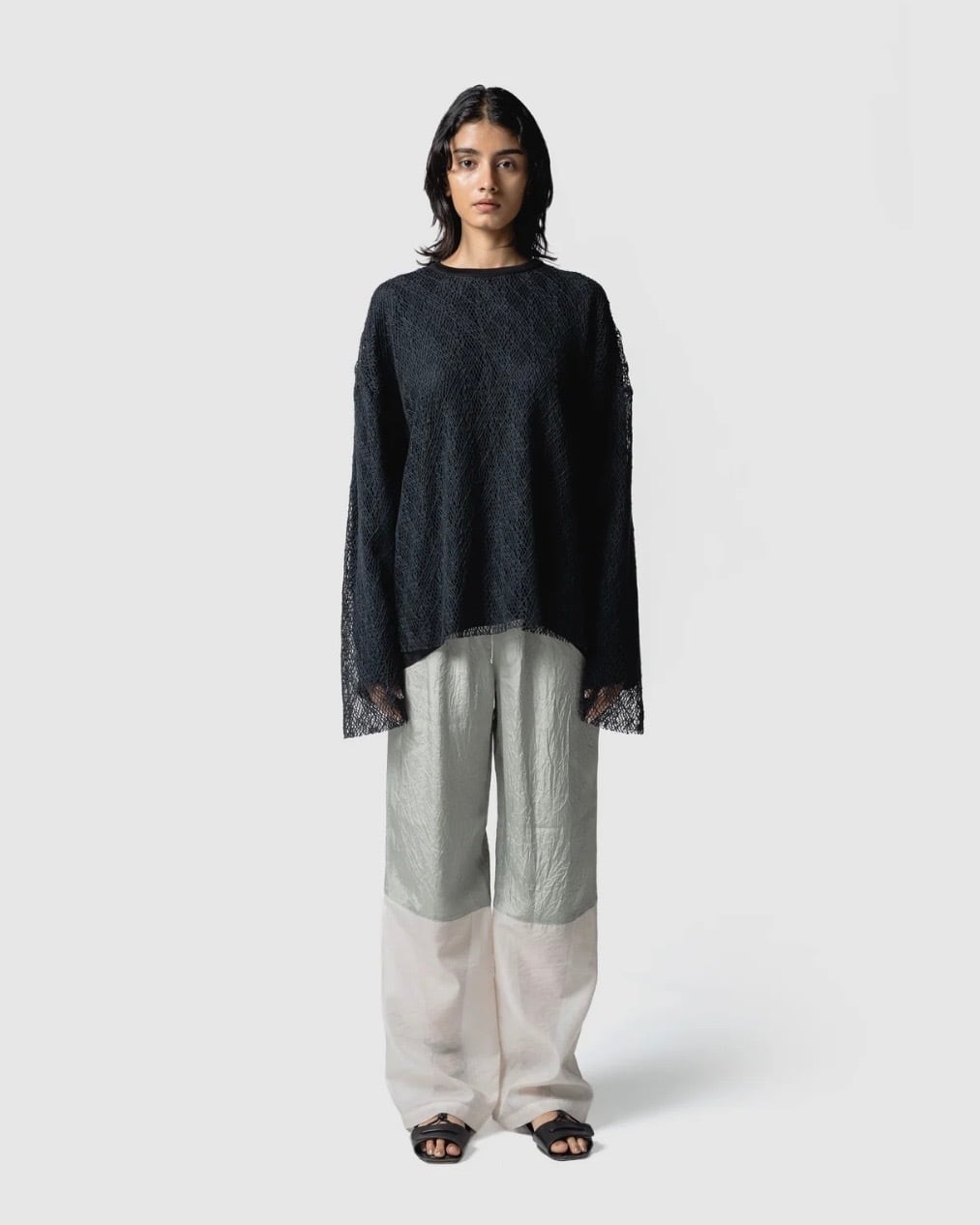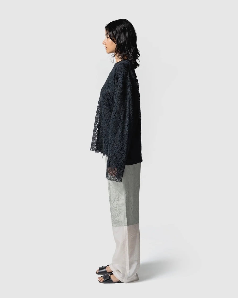 光沢とレースの異素材使いが魅力のリバーシブルトップス