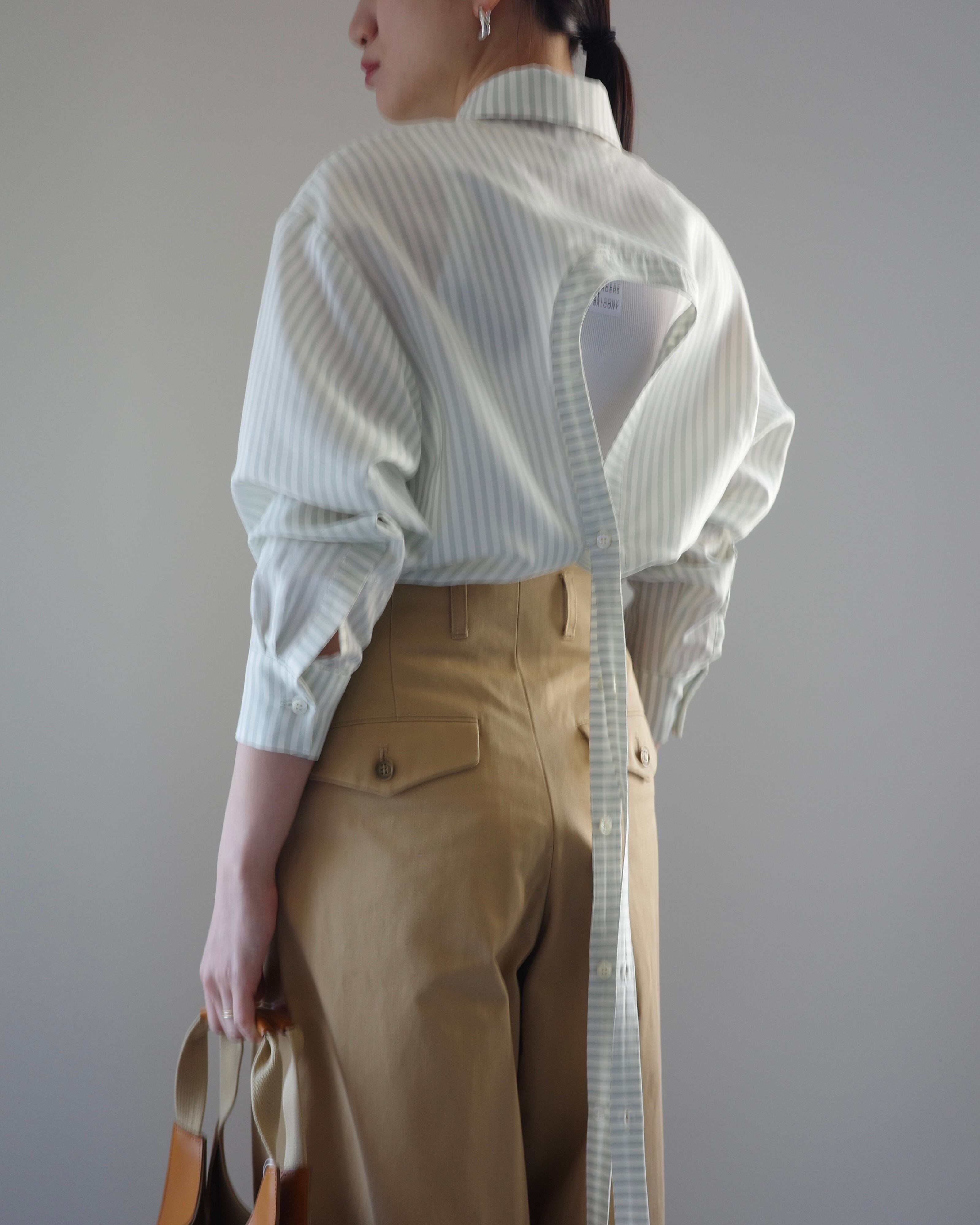 ベルト切り替えが無く、深くデザインしたワンタックウエストデザインがポイント。
