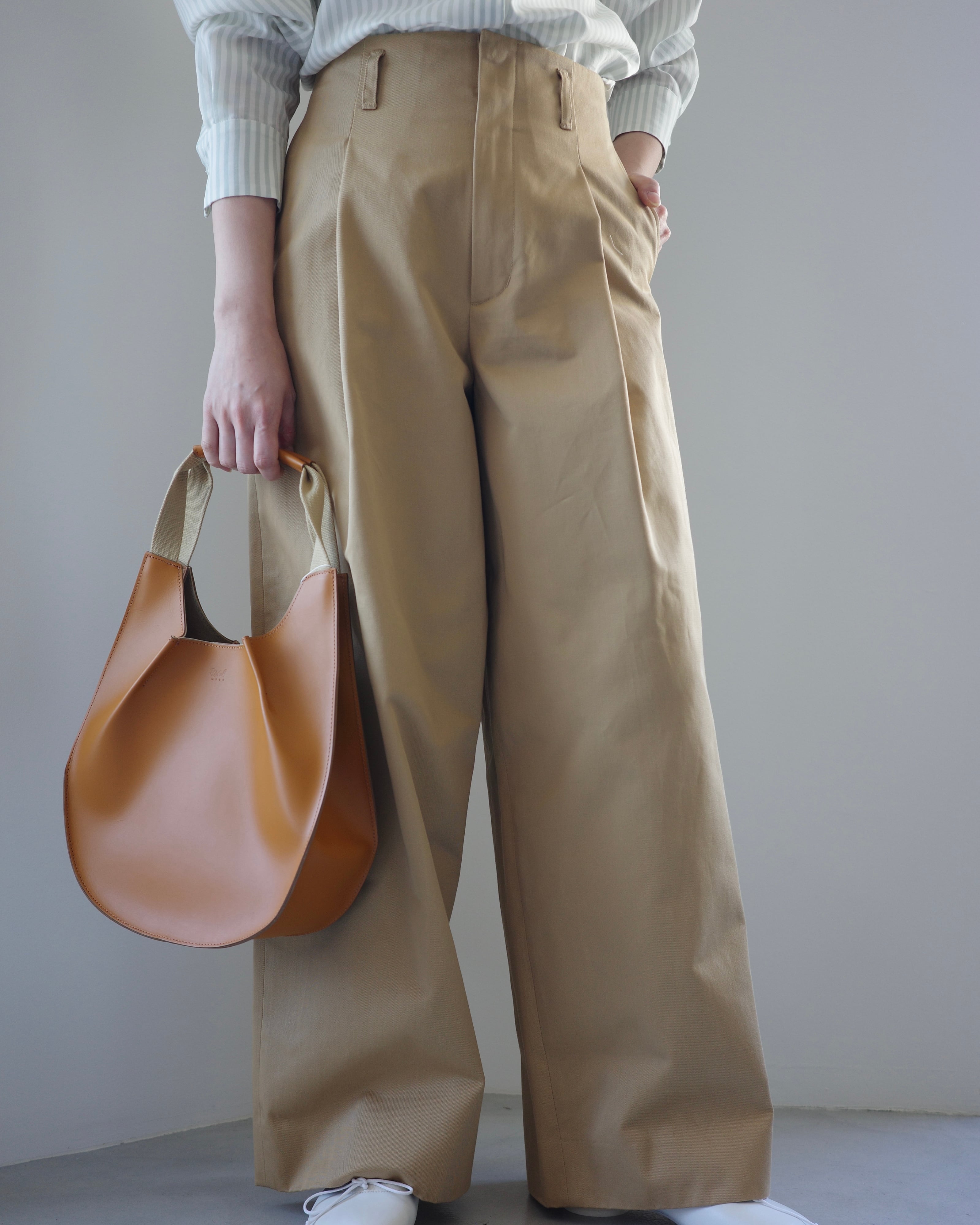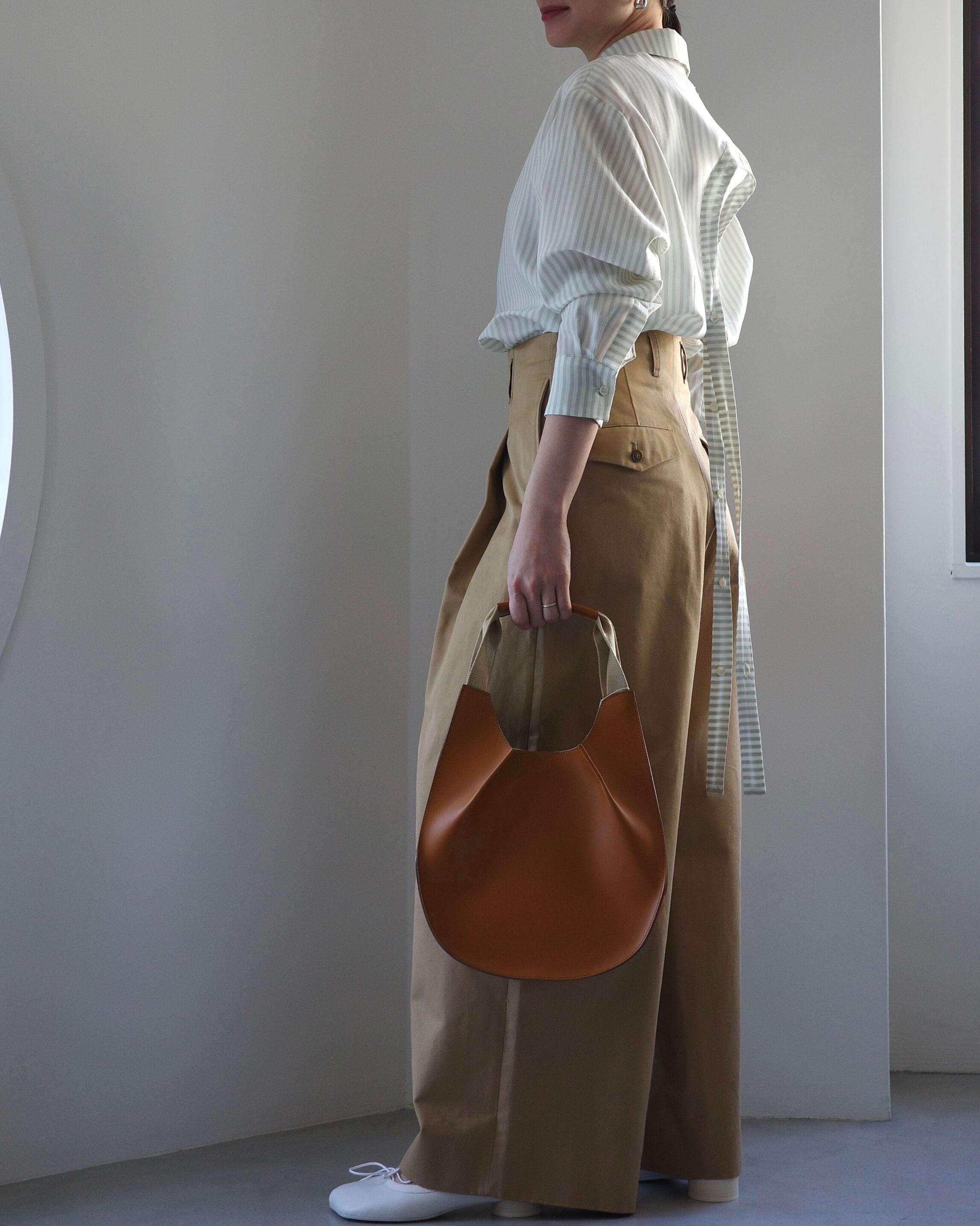 前後口部分にタックデザインを加えることで、丸みがあり独特な立体的なフォルムを演出した