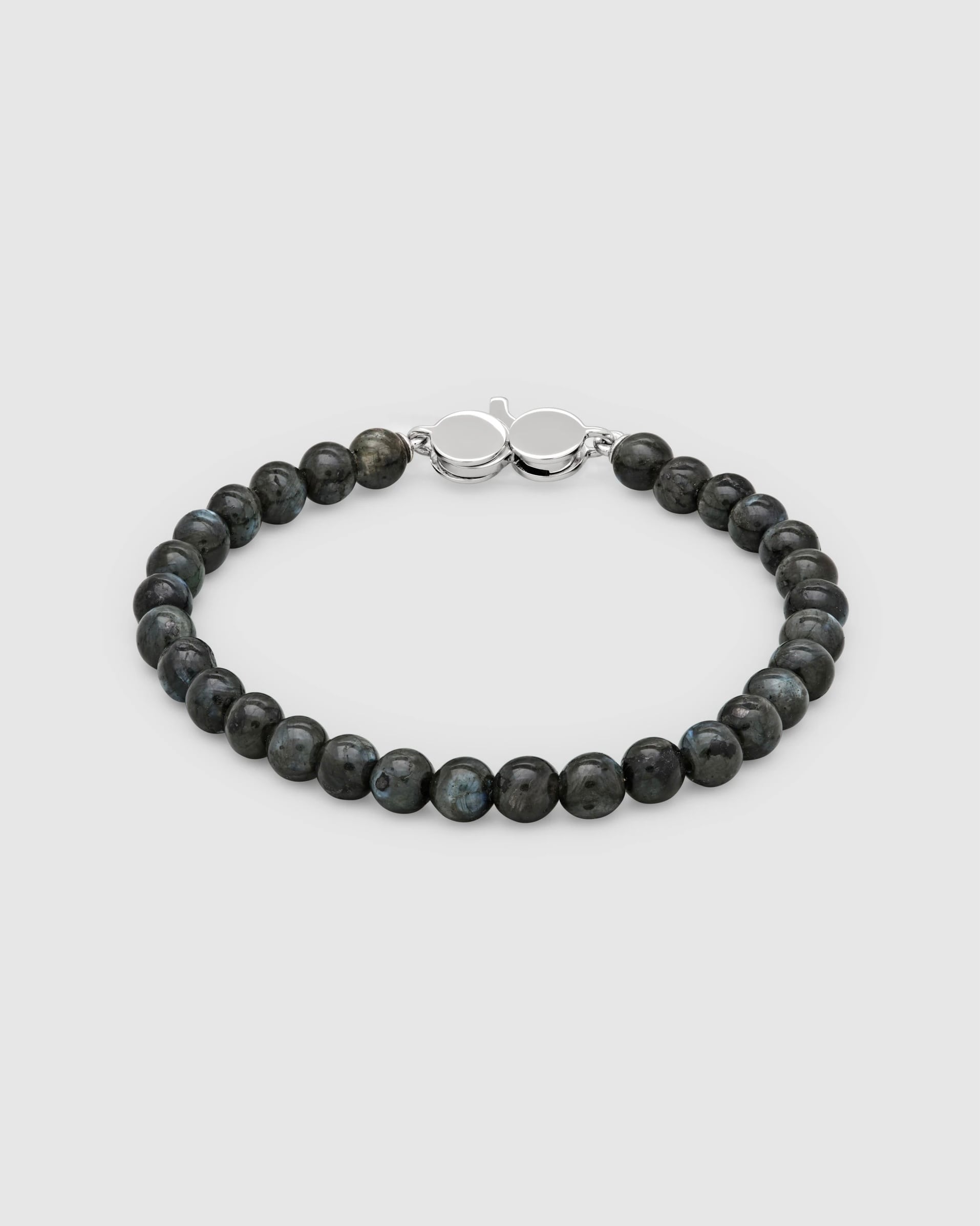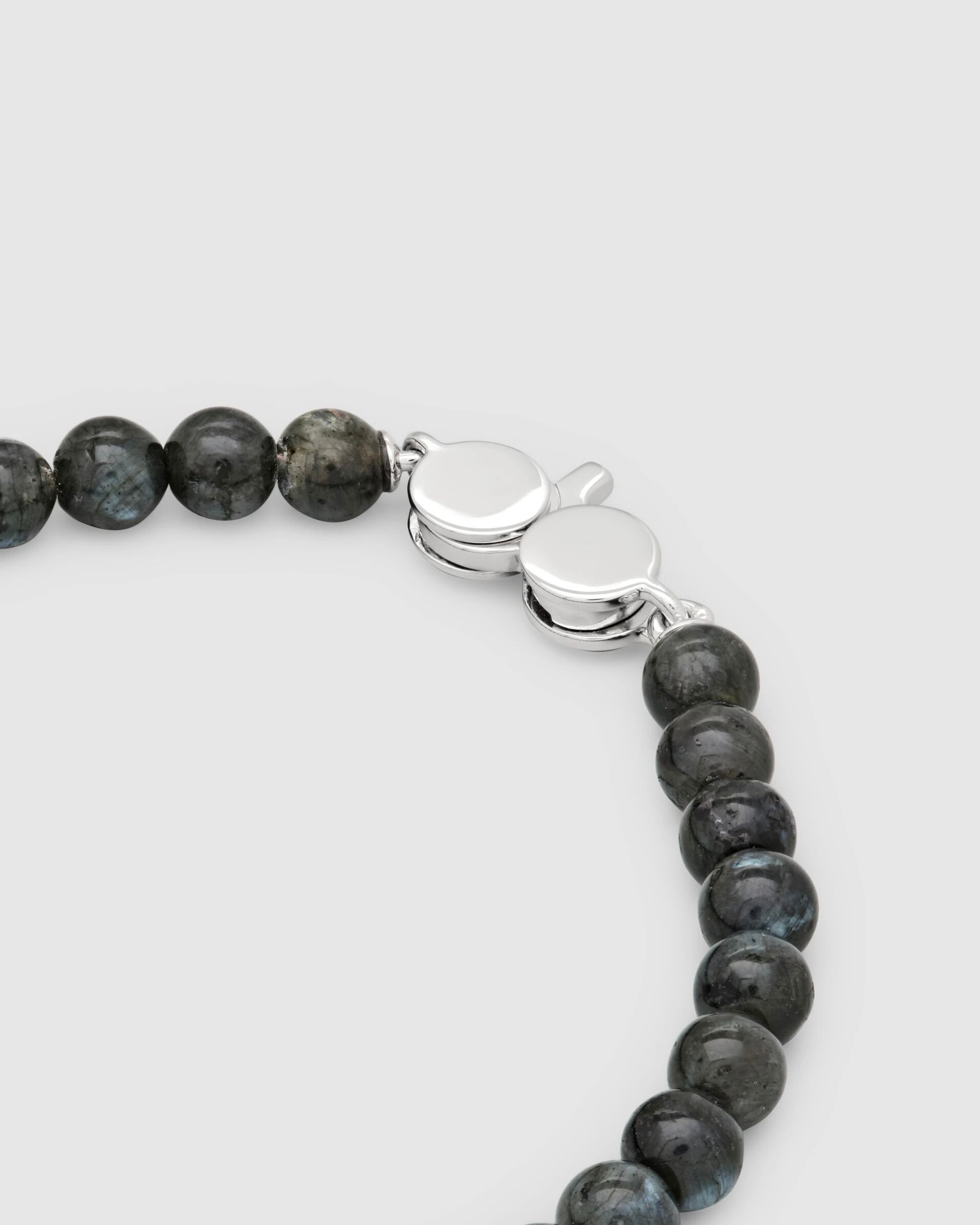 6mmのブラックラルビカイトビーズを丁寧にカット、研磨、そして手作業で組み上げたクラシックなビーズブレスレット。Tom Wood社製のシルバークラスプがアクセントになっています。