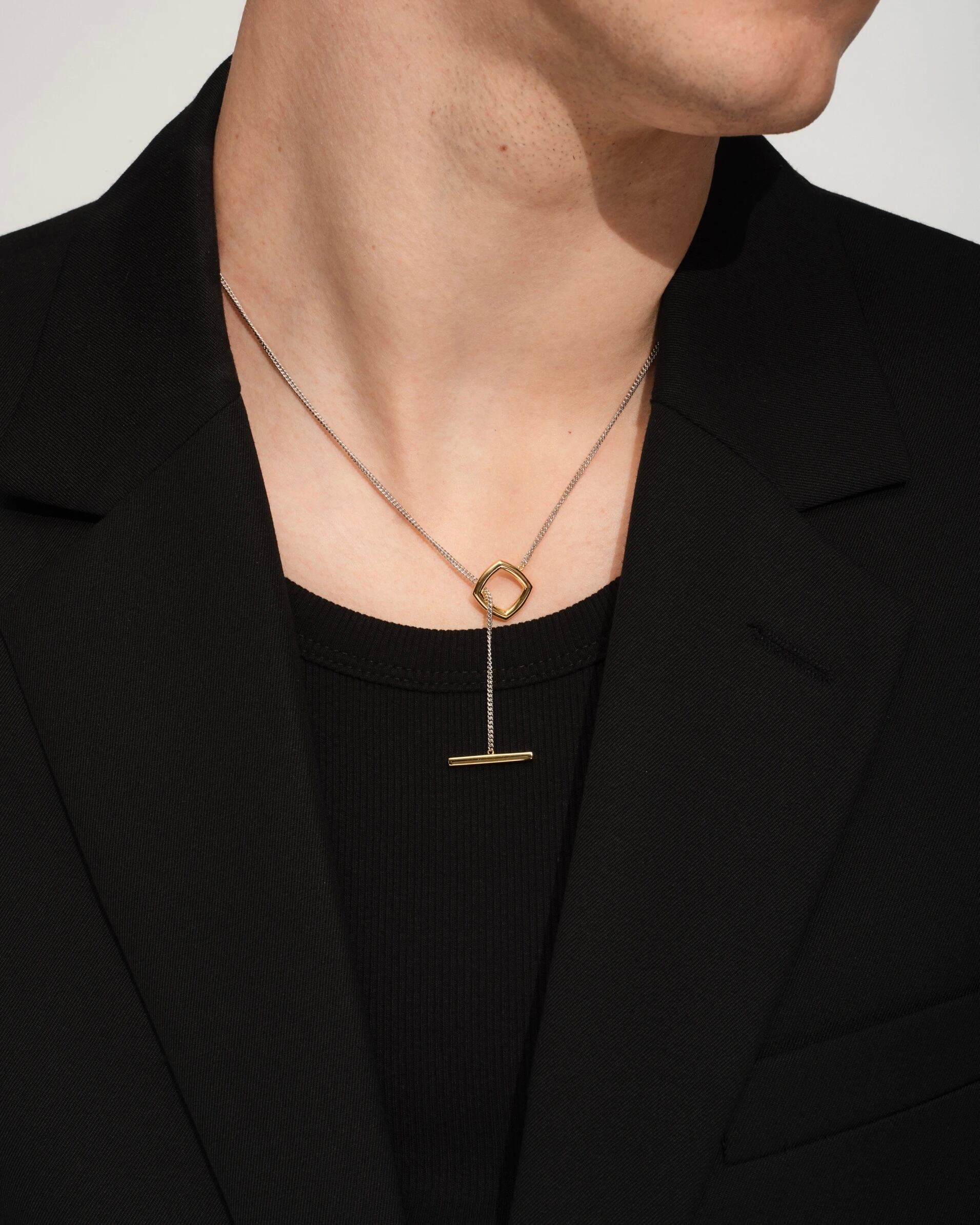 フレームペンダントデュオは、スリムなカーブチェーンにカスタムメイドのTバーとリングクラスプをセットしたコンテンポラリーなネックレスです。クッションシェイプをデザインの中心に据えたフレームコレクションは、私たちの最初のシグネチャースタイルへのオマージュです。
