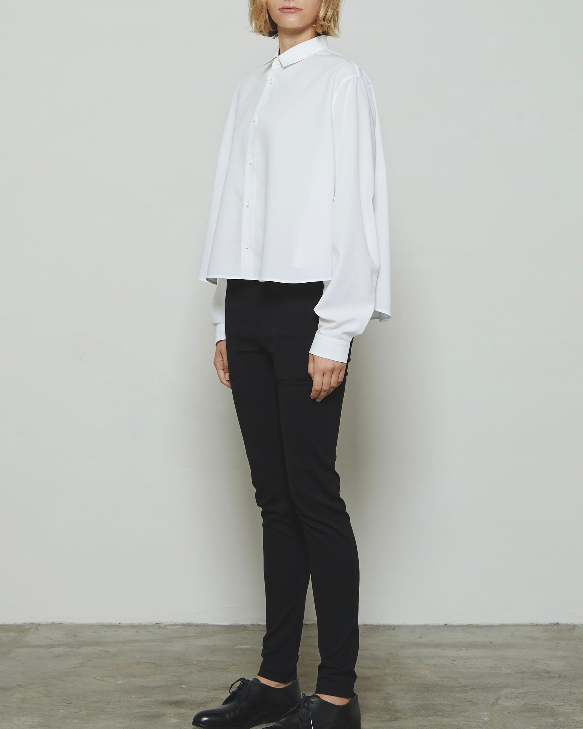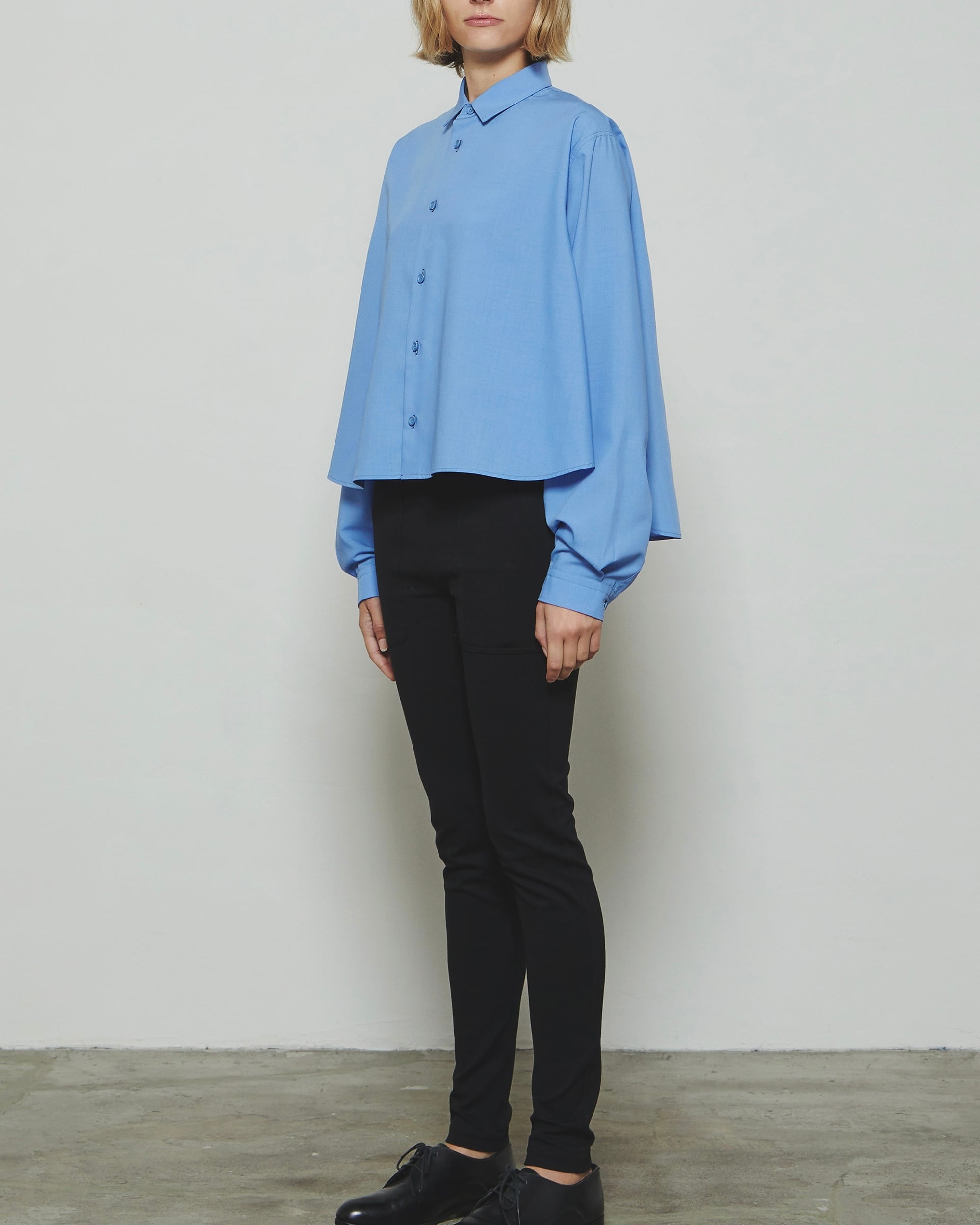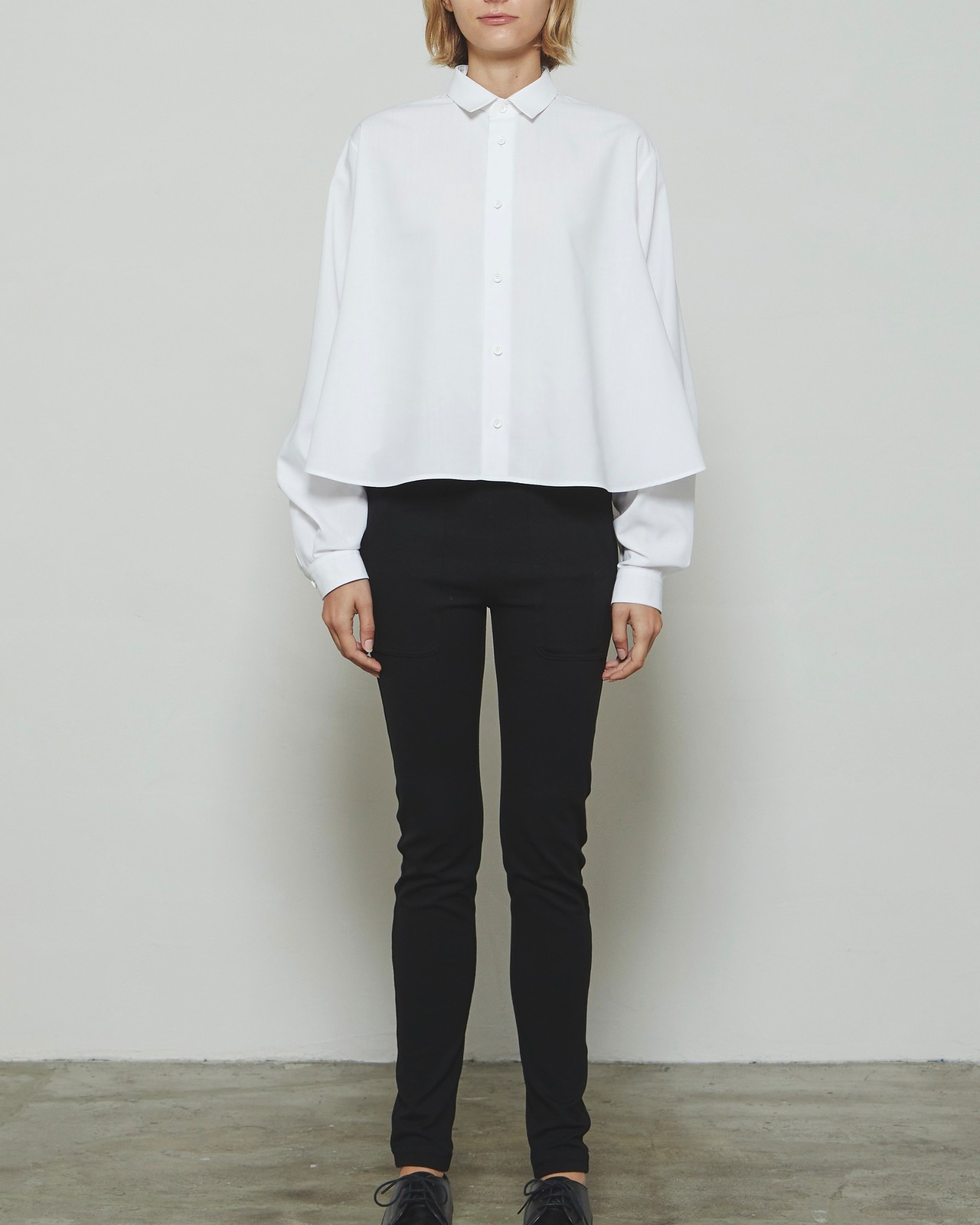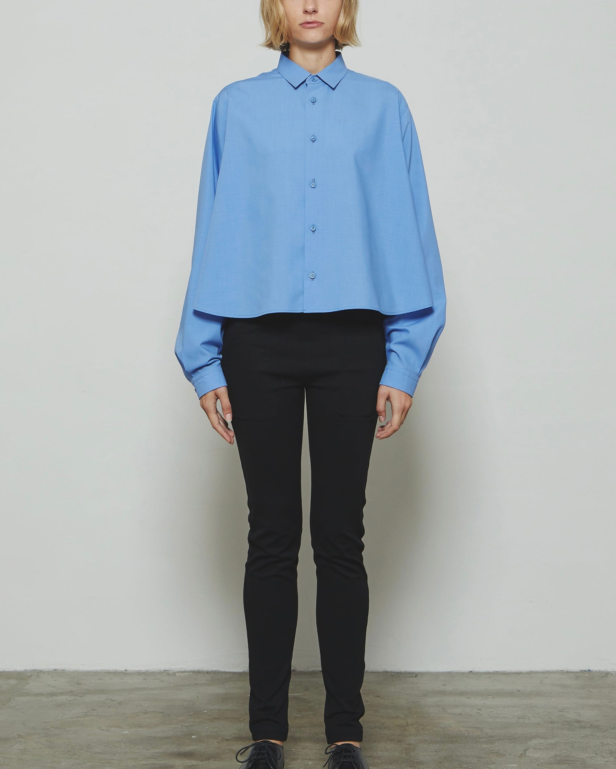 スーパーライトのスパンブロード素材を使用したレギュラーカラーのAラインシャツです。軽やかで滑らかな素材感が特徴で、動きやすく快適な着心地を叶えます。シンプルな前立てとドロップショルダーで肩回りに柔らかな印象を添え、裾に向かって広がるAラインが女性らしい立体感を演出します。襟元はレギュラーカラーで洗練された印象を保ち、長めの袖丈が自然にブラウジングして立体感を生み出します。軽やかで上質な素材感と美しいシルエットが、1枚でもレイヤードスタイルでも上品に映える、THE RERACSならではのシャツです。