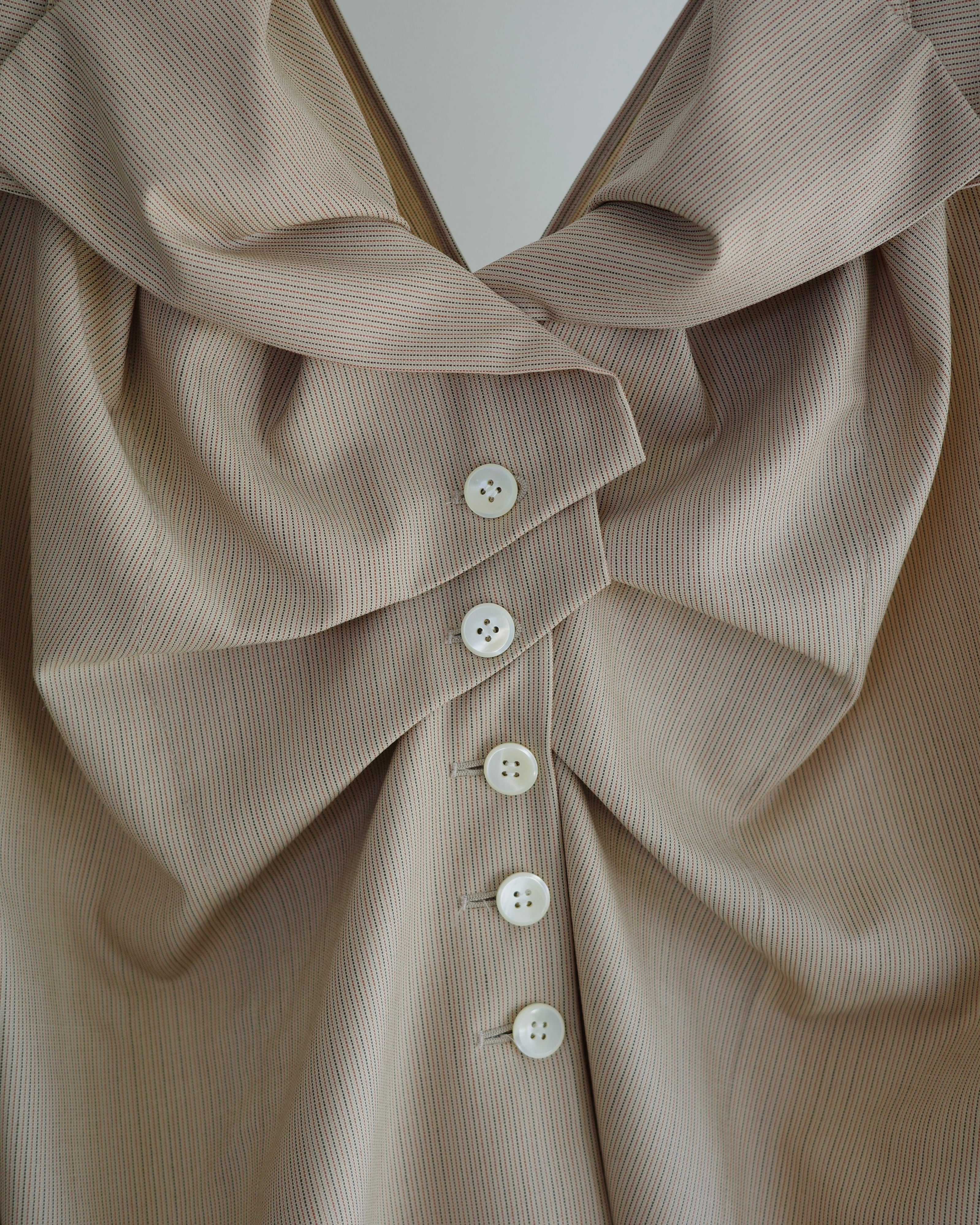 合理的な設計ではなく手探りで襟やラペル、覆いかぶさるような肩などを形作っていった。