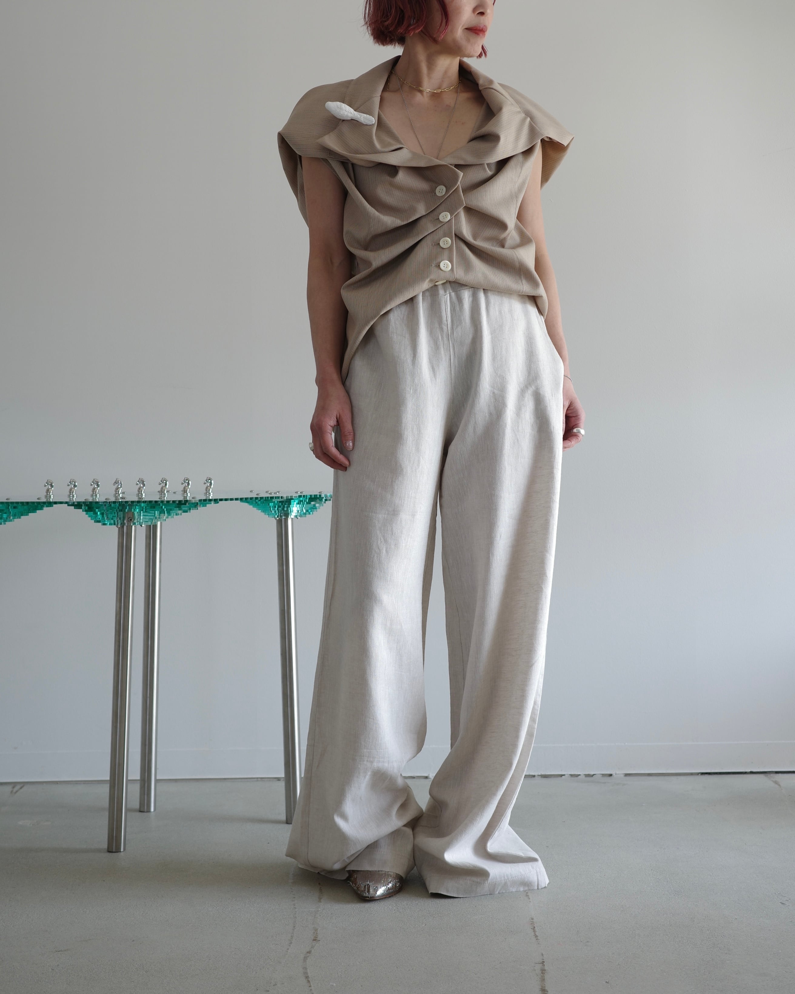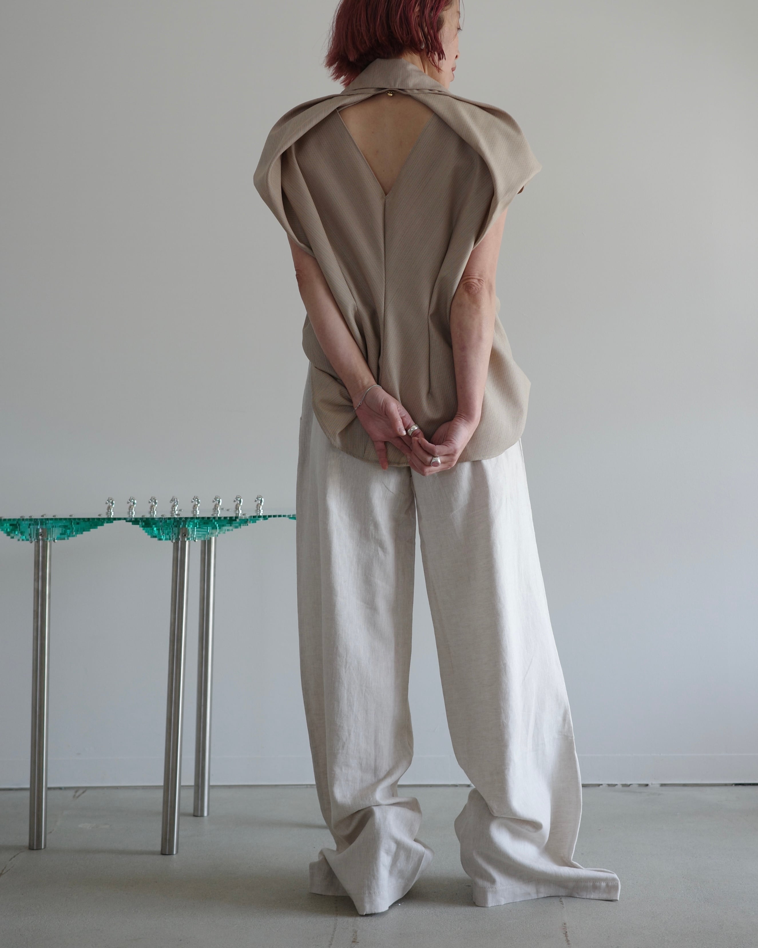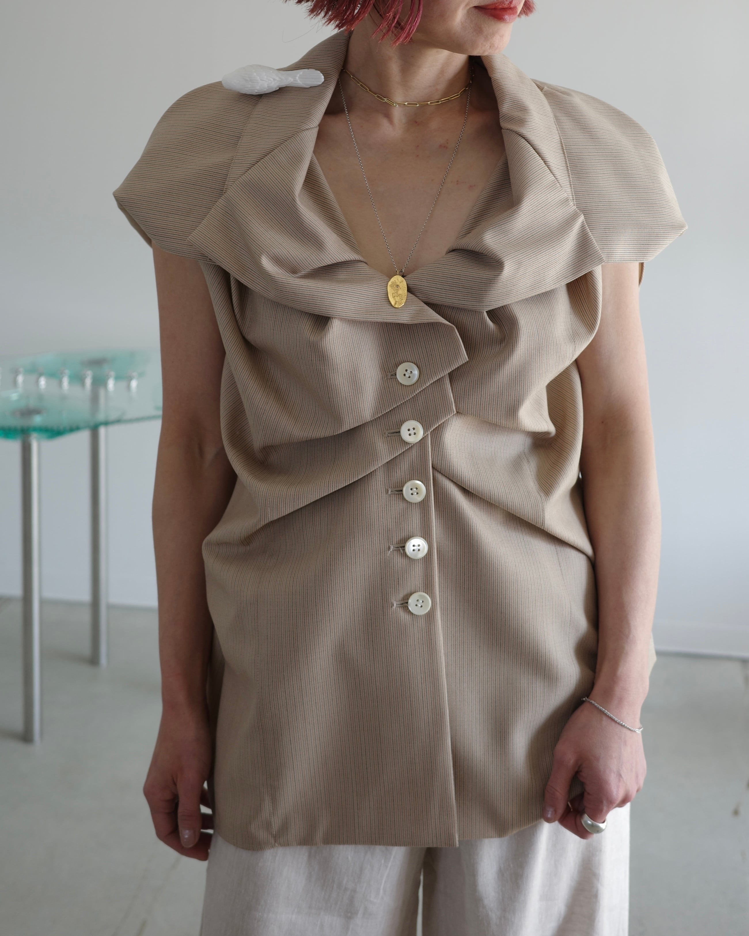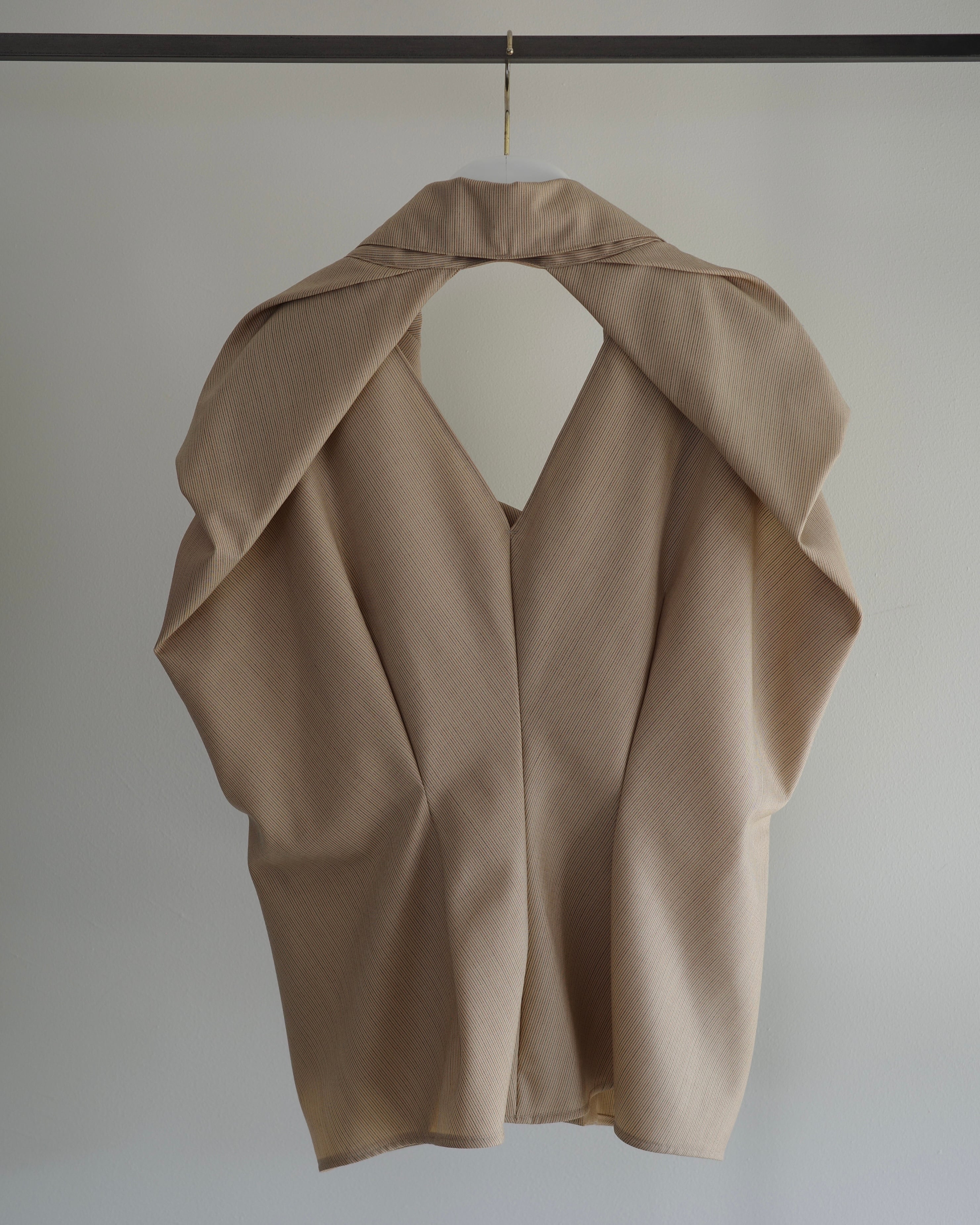 幾何学的な1枚のパターンから作られたノースリーブジャケット。