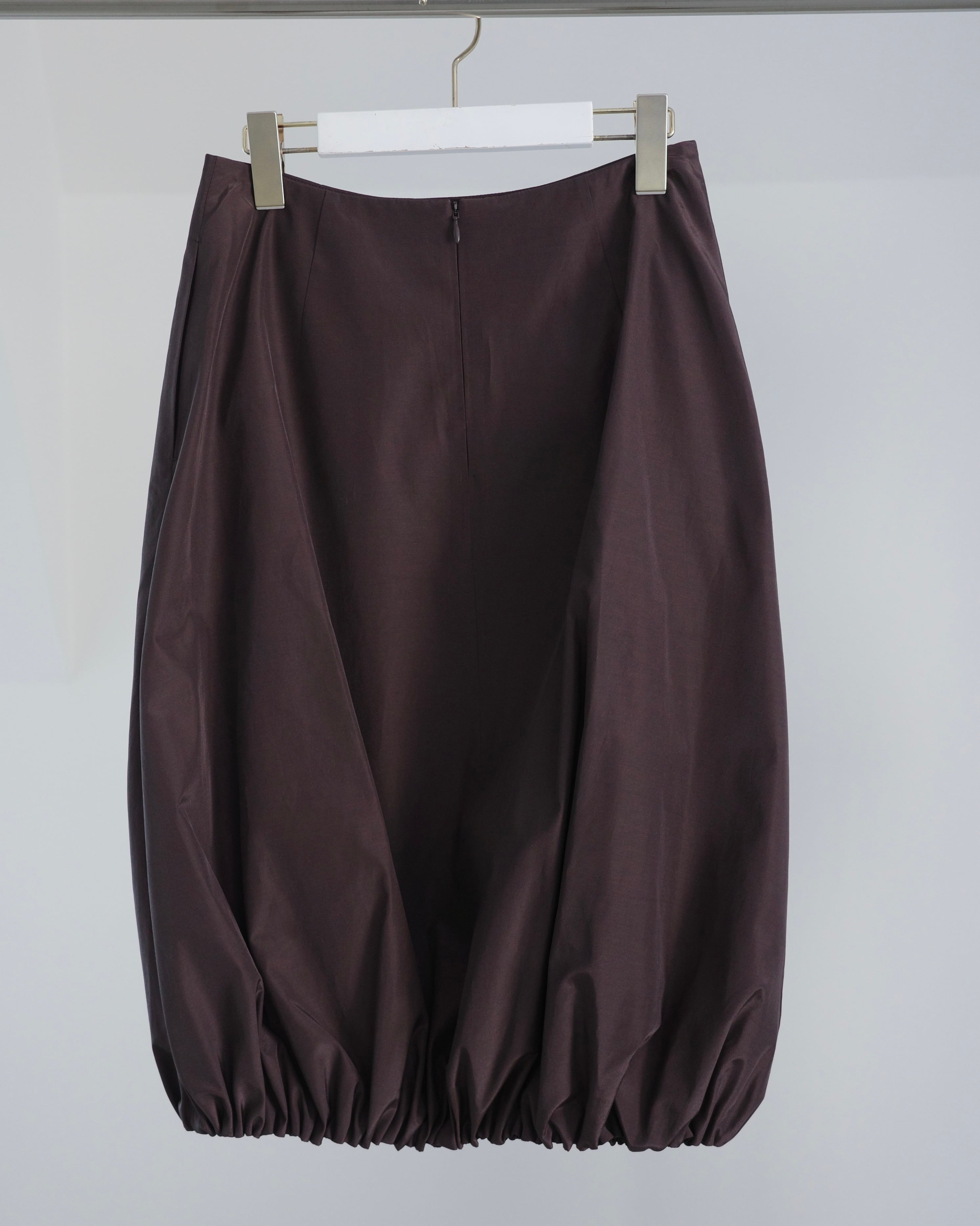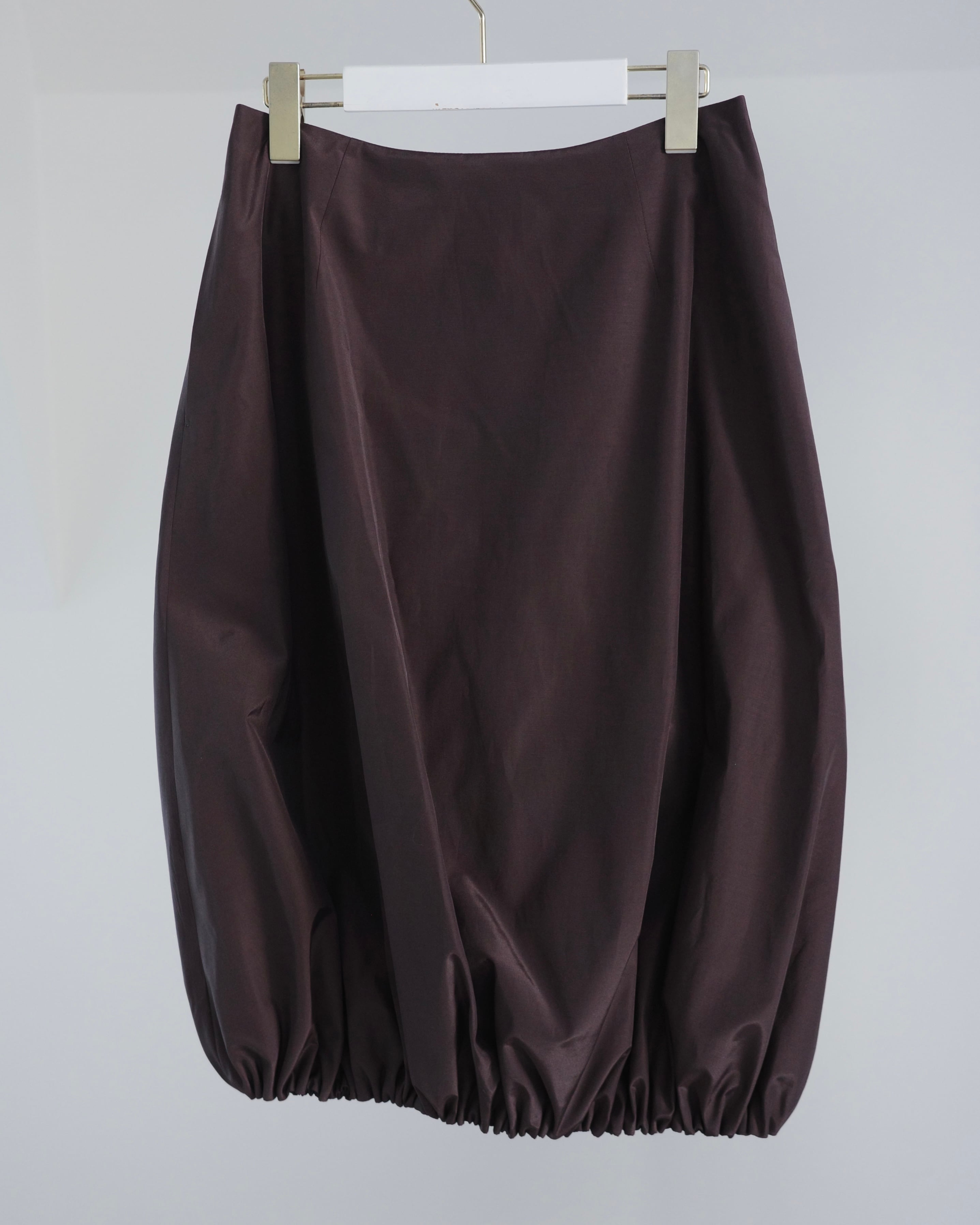 裾を内側に折りこむことで様々な着丈で着用可能なバルーンスカート。