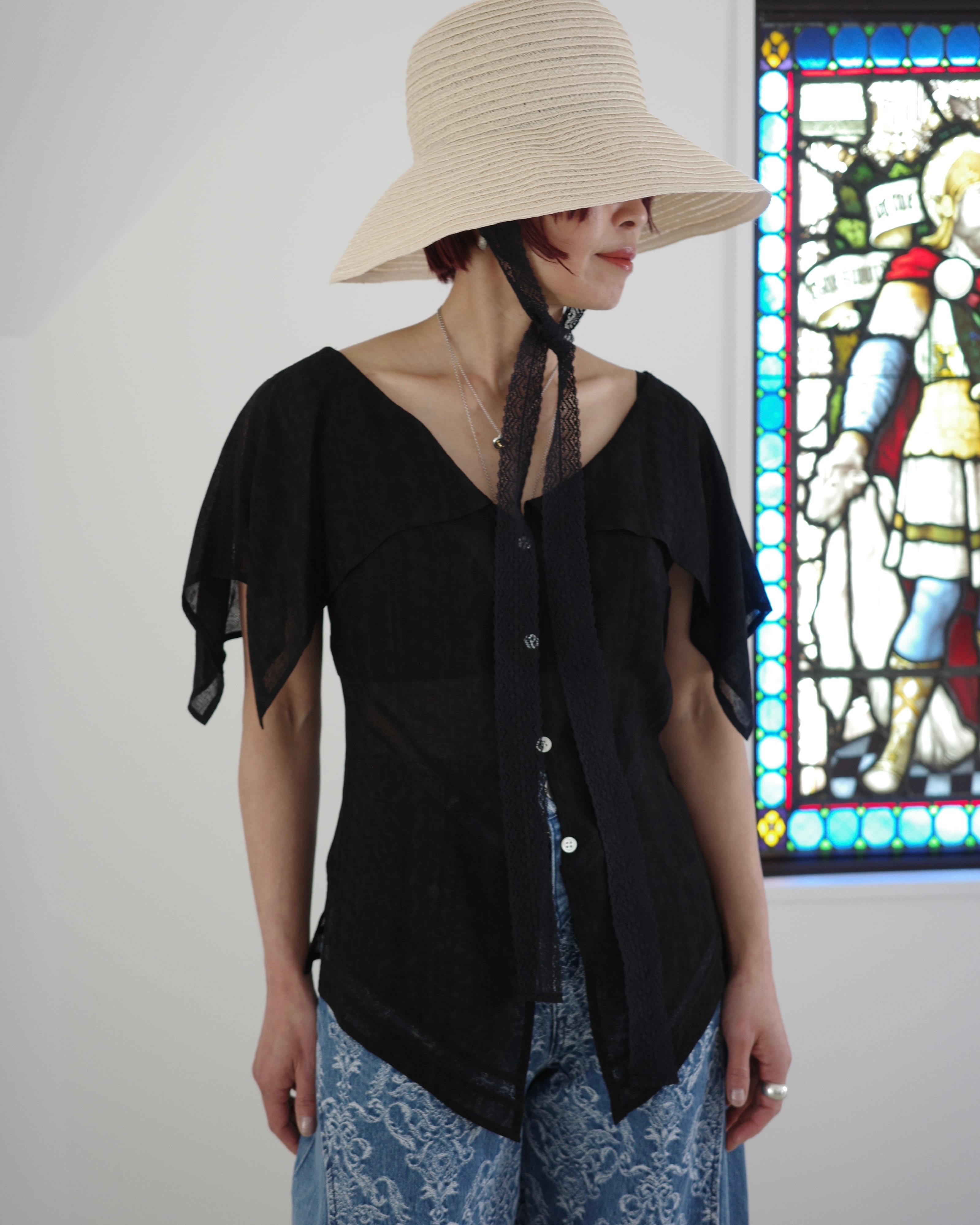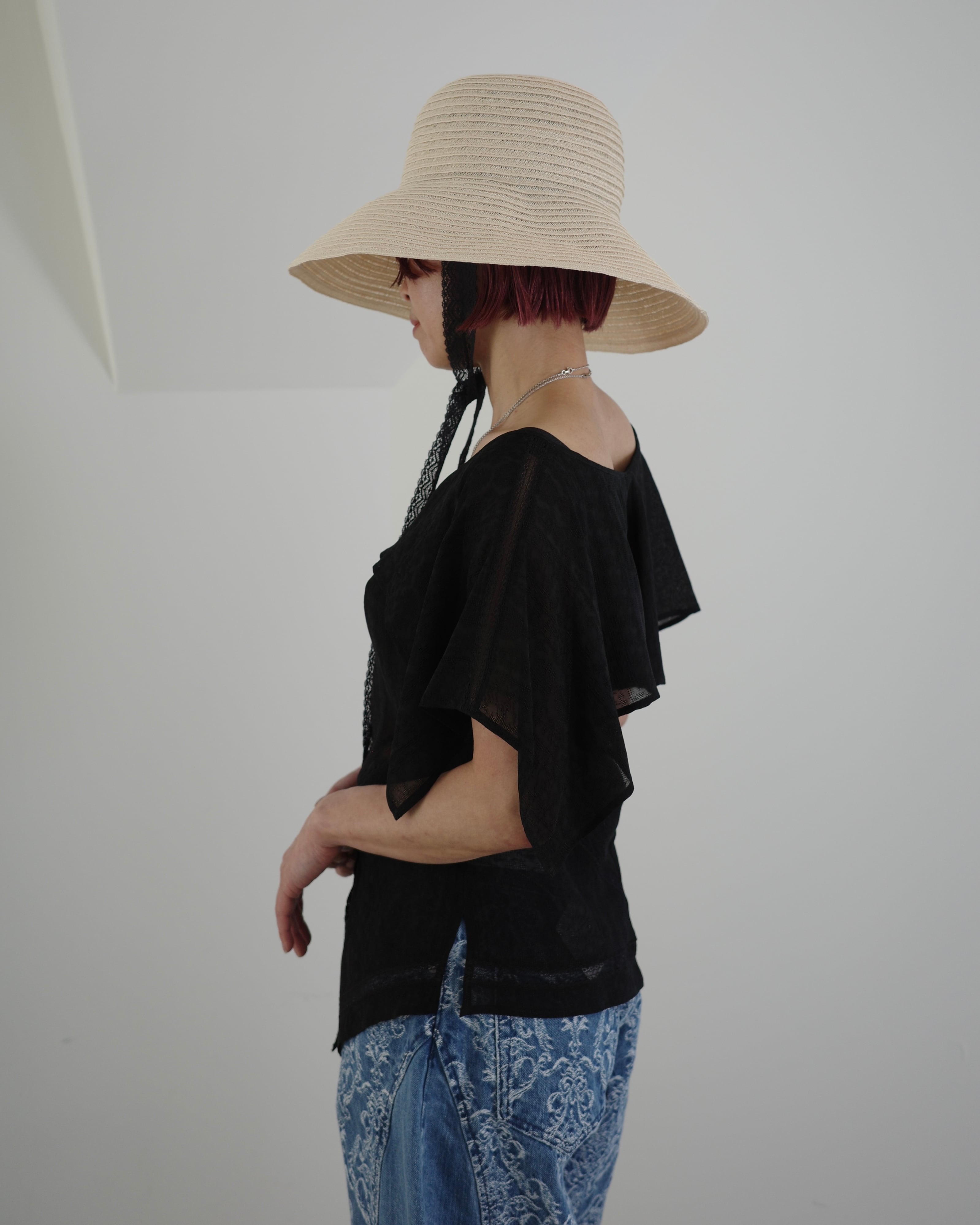 FETICO / LACE JACQUARD TOP -black-