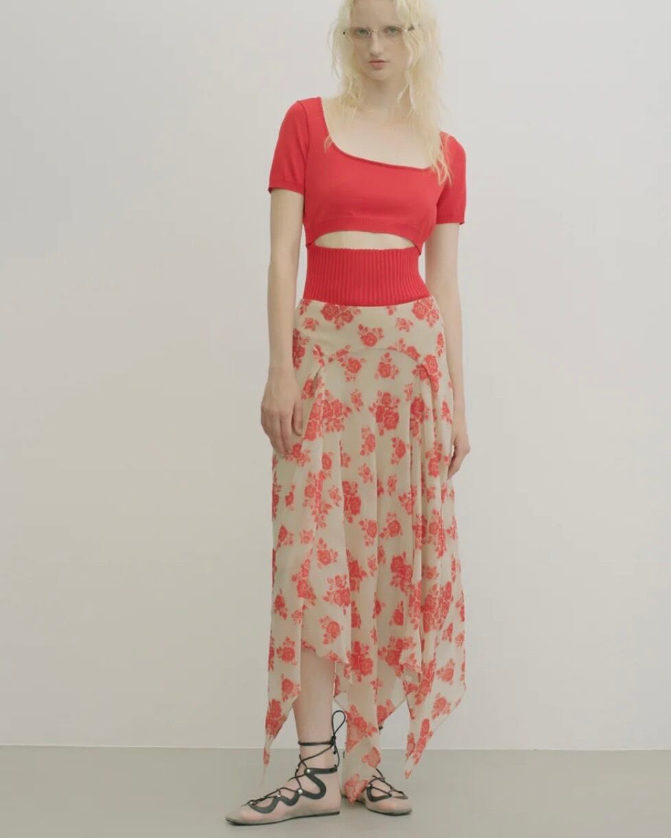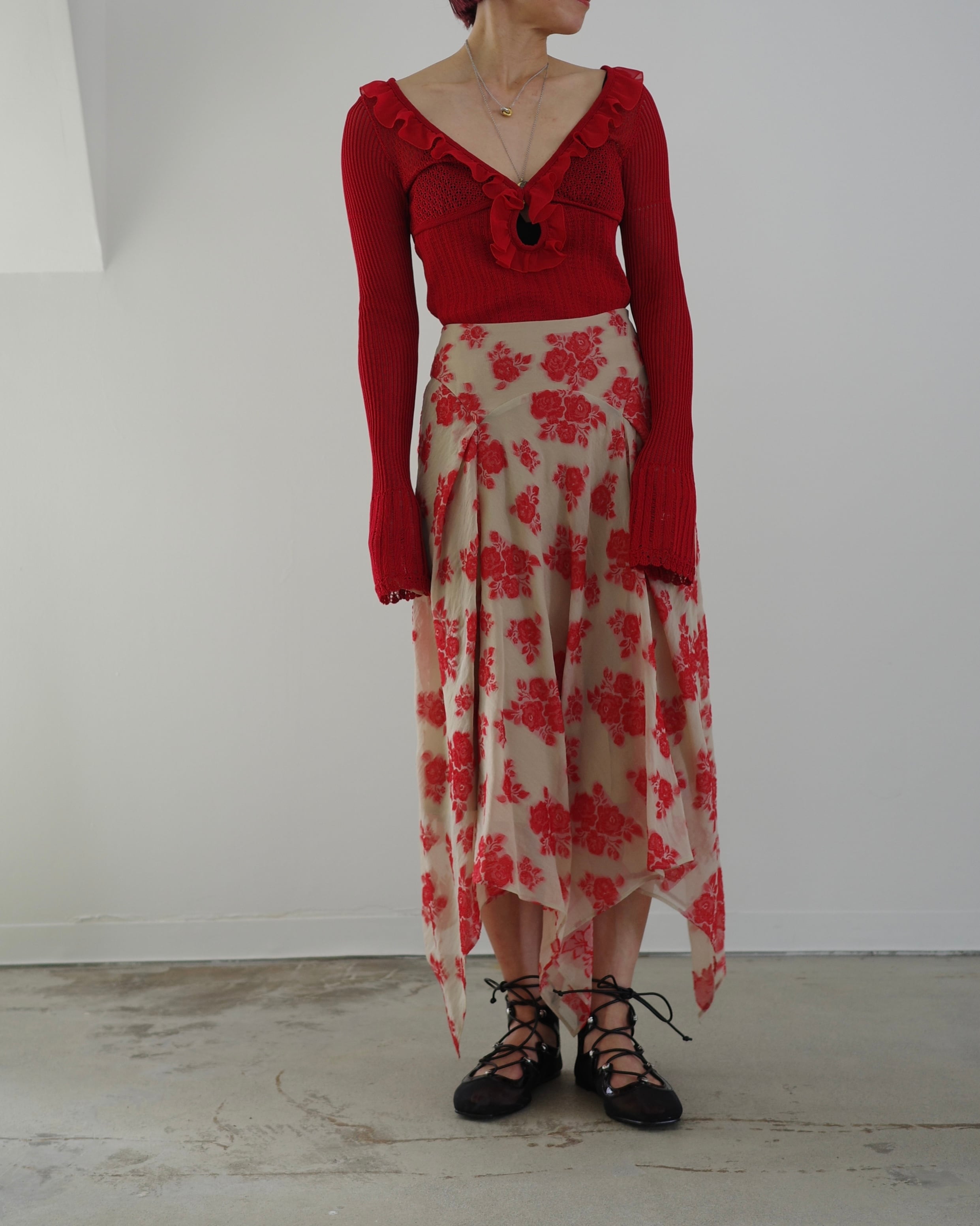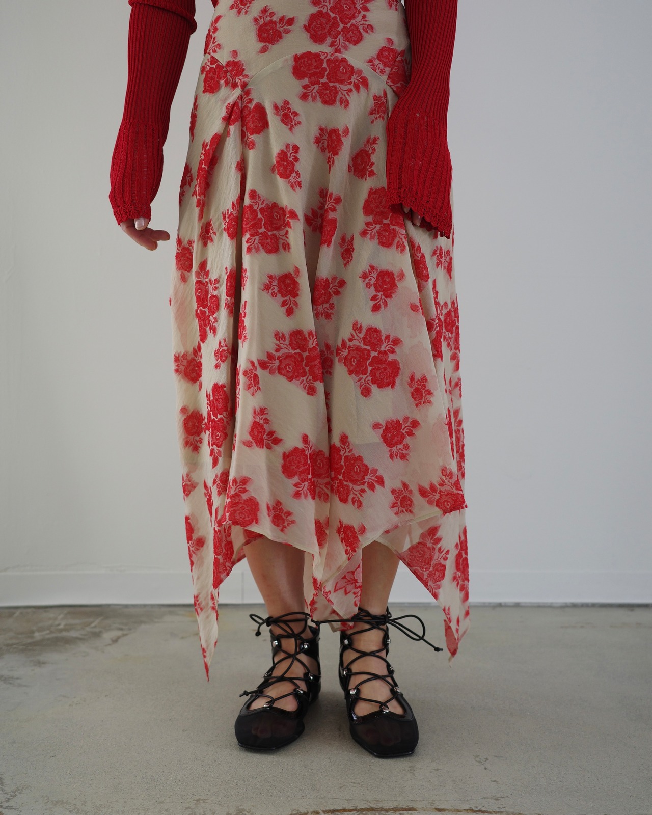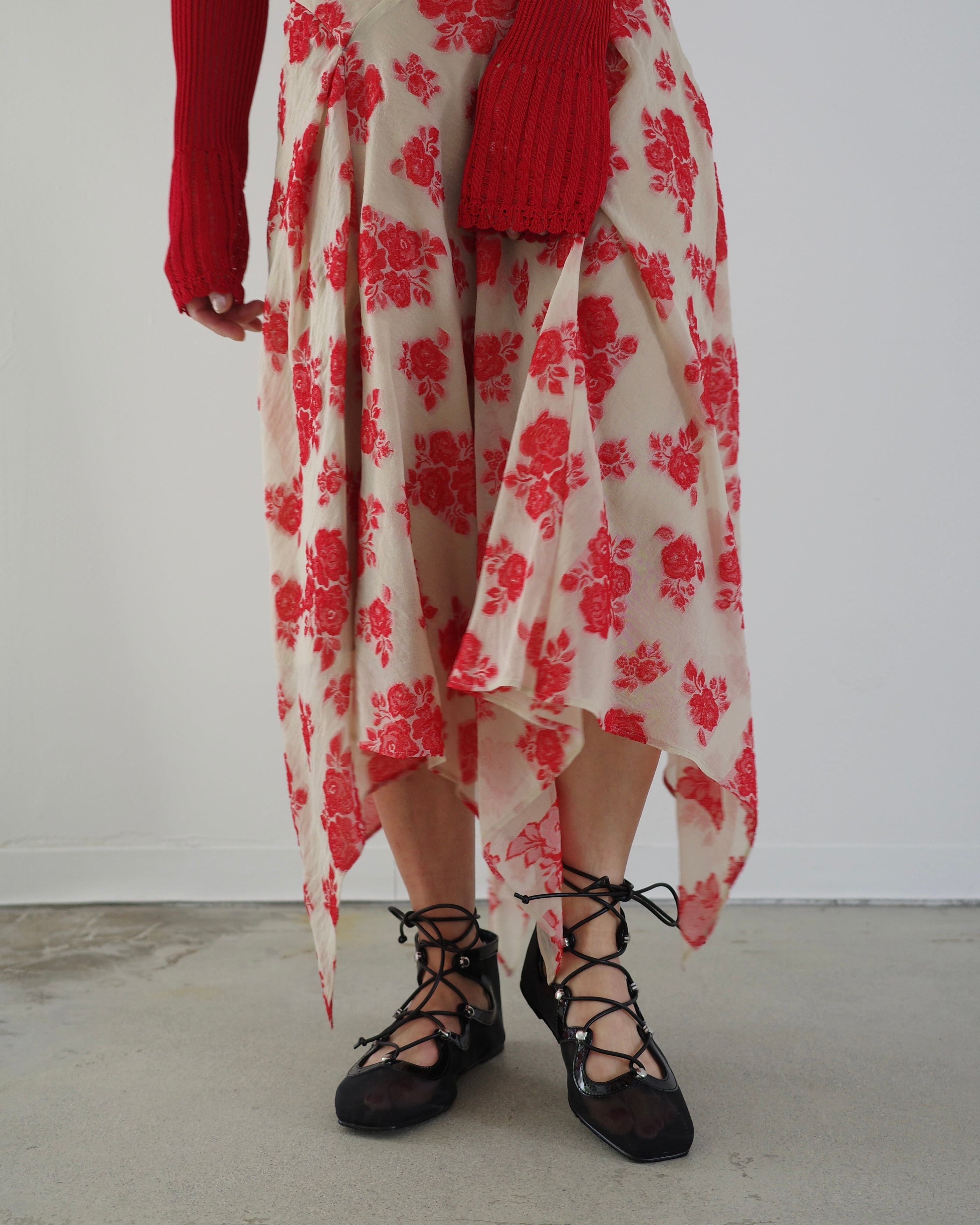 FETICO / DRAPED FLORAL JACQUARD SKIRT