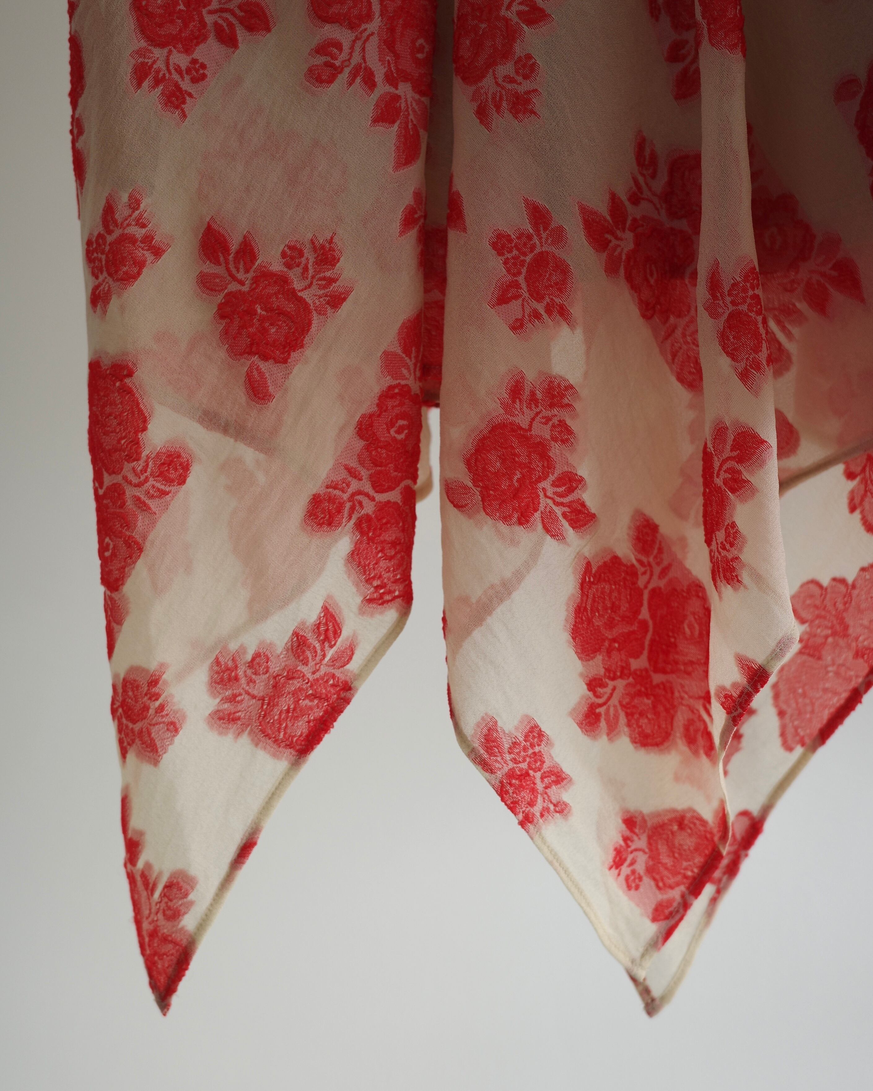複数の糸を使用し繊細で立体感のあるバラ柄を表現