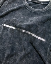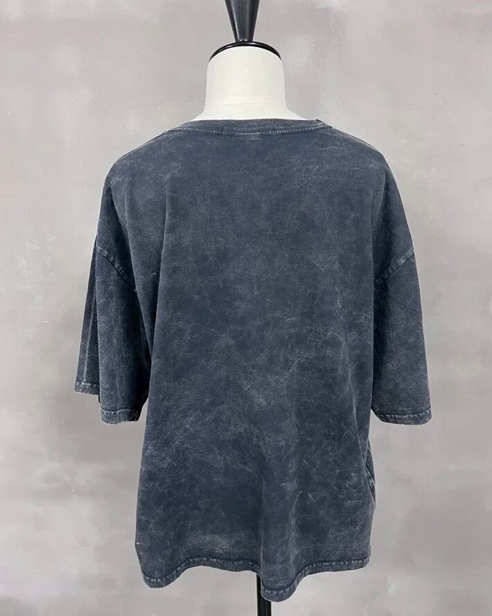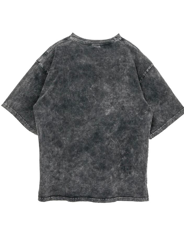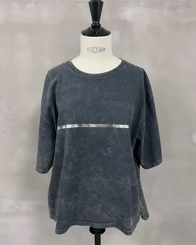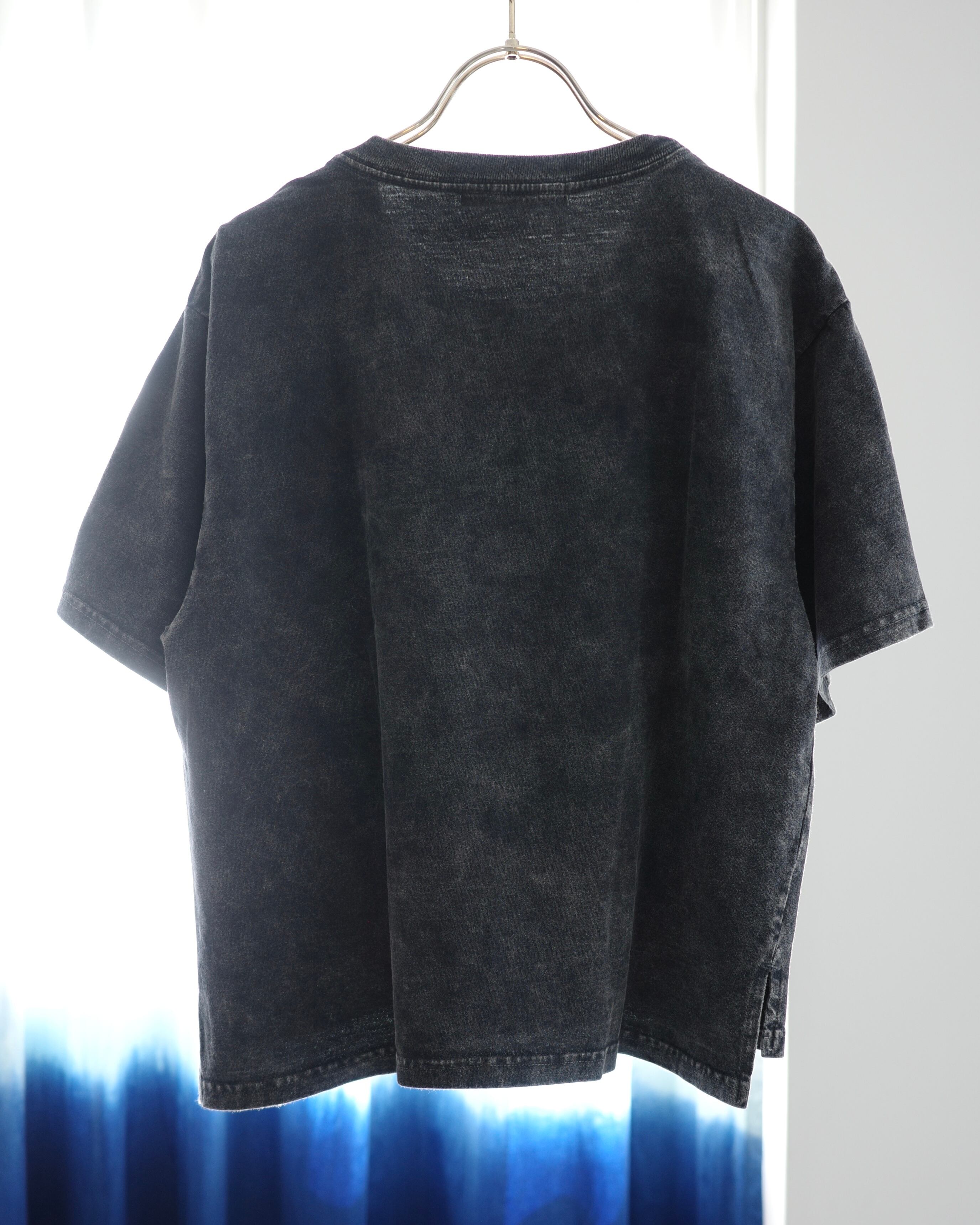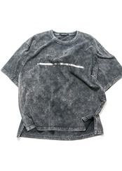 ワイドシルエットでサイドにスリットを入れたデザインのTシャツに特殊な脱色と染めを施しました。