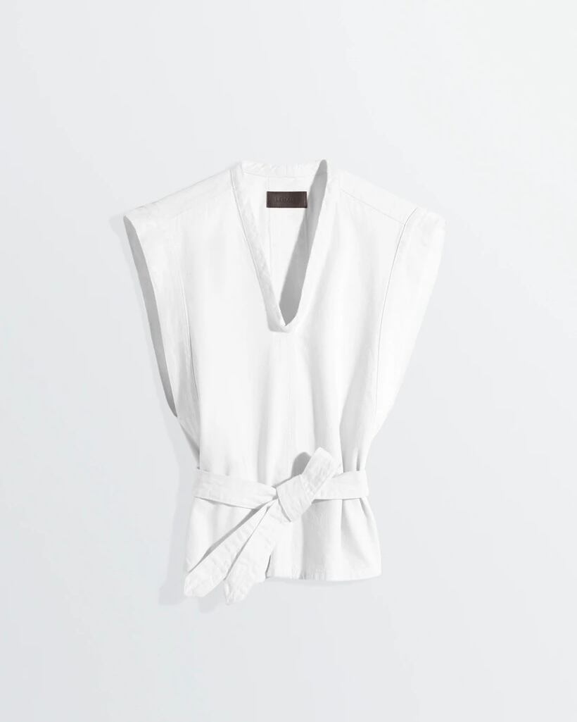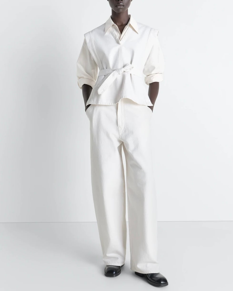 LEMAIREの快適さとエレガンスの調和から着想を得たチャジブルトップスは、ブリーチ加工を施したデニムを使用し、タイムレスで女性らしいシルエットに仕上げています。