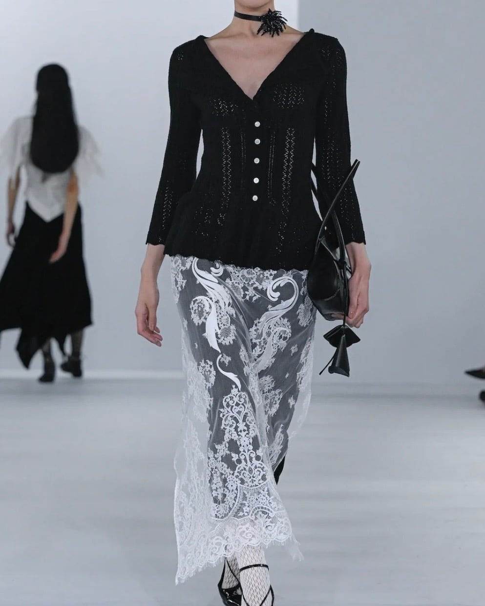 FETICO / EMBROIDERED LACE SKIRT -white lace-