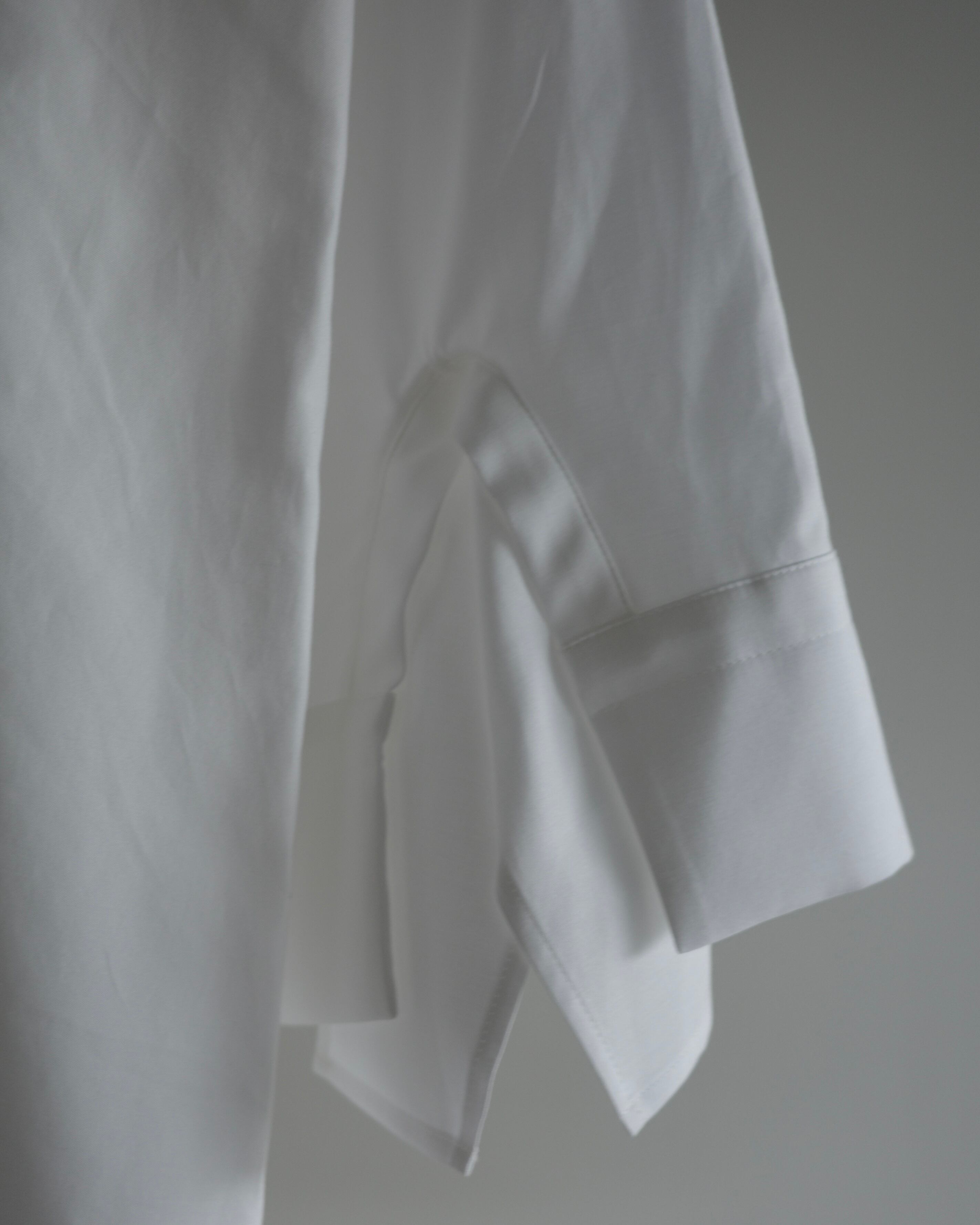 ケンボロ風切り替えスリットにスクエアパーツを縫い込んだドレープを楽しむデザインスリーブが腕周りのカバーにもなります。