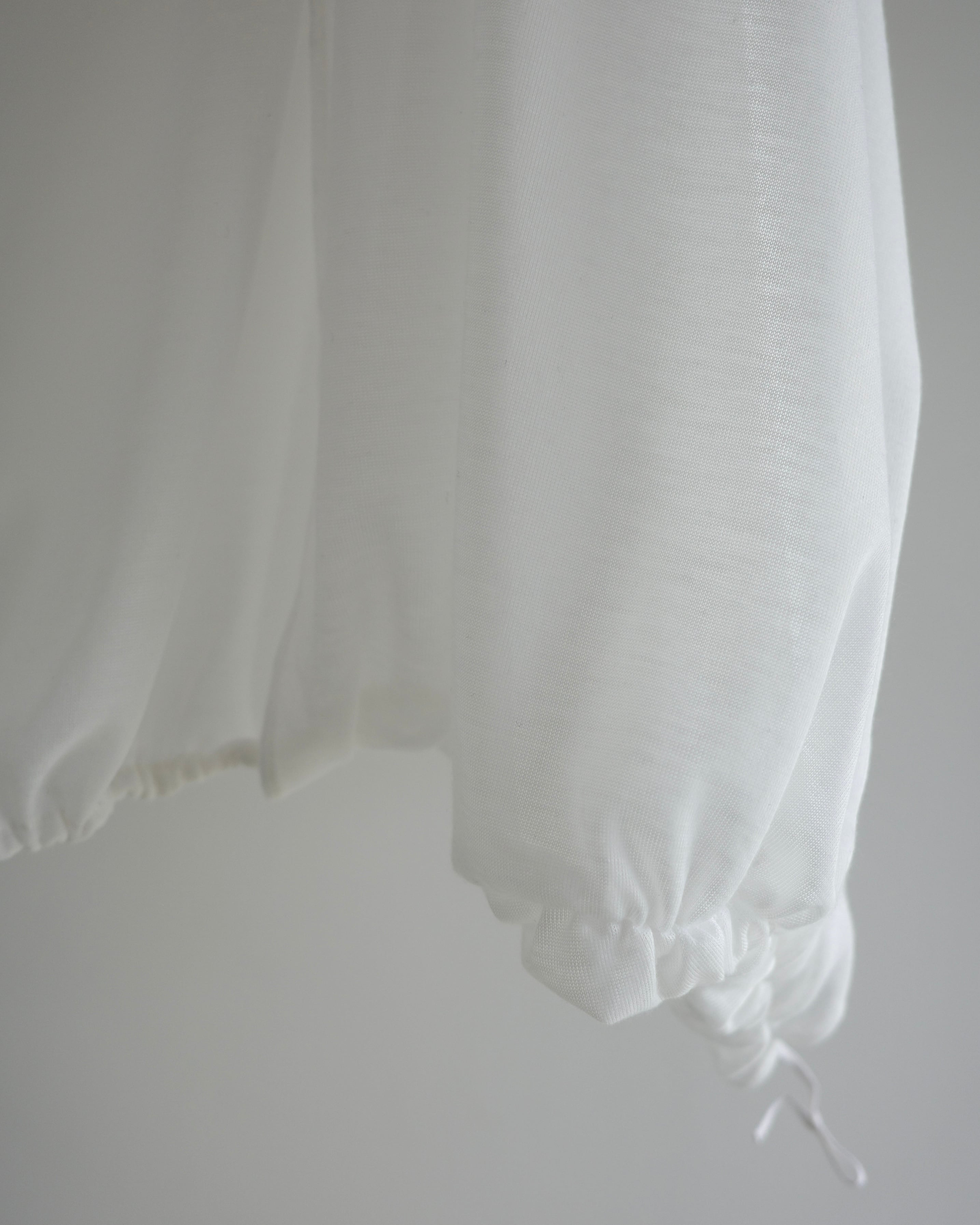 シルク混のサラッとした生地感と透け感が夏の羽織としても、レイヤードアイテムとしても、