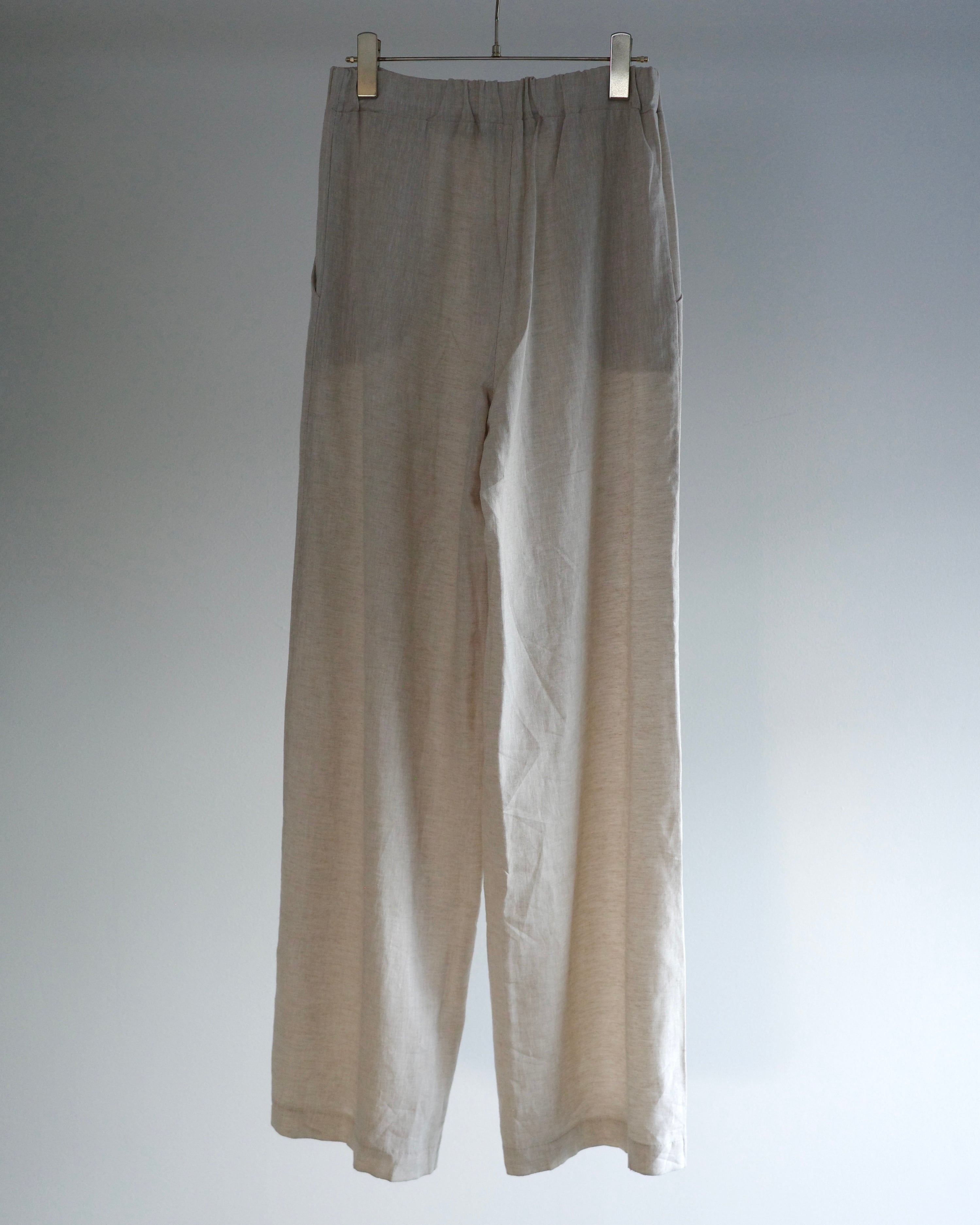 リネンヴィスコースのウエストゴムのリラックスパンツ。