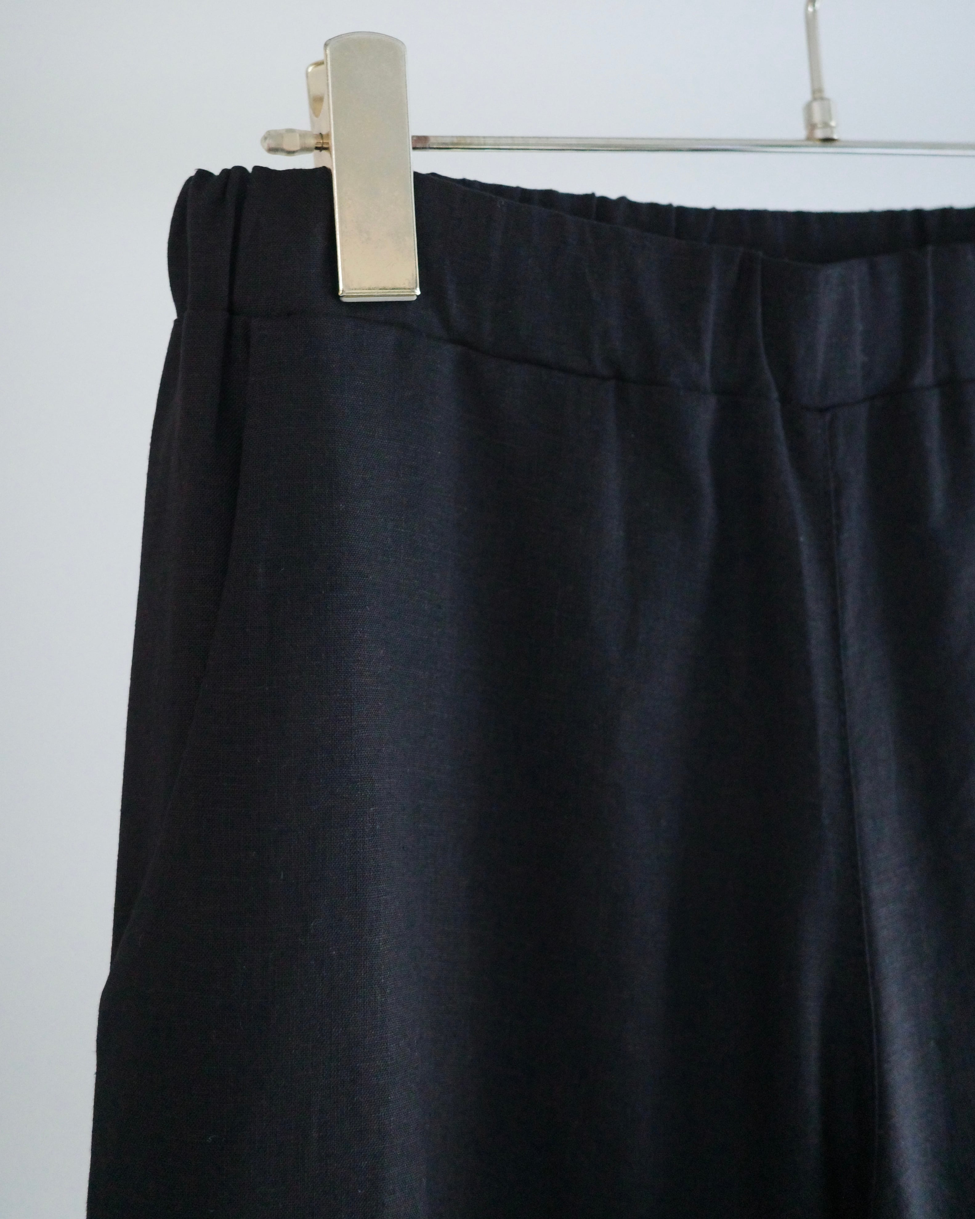 リネンヴィスコースのウエストゴムのリラックスパンツ。