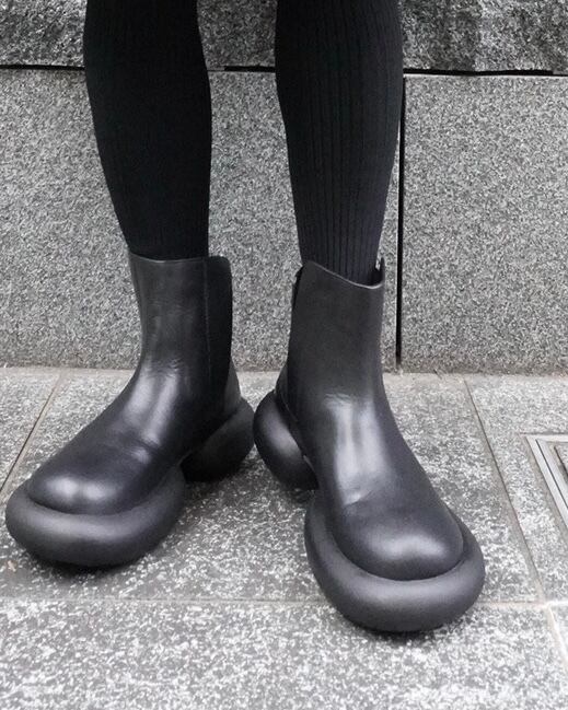 靴の中にサイドゴアの仕様をあしらうことで着脱がしやすくなるように工夫をしたショートブーツです。