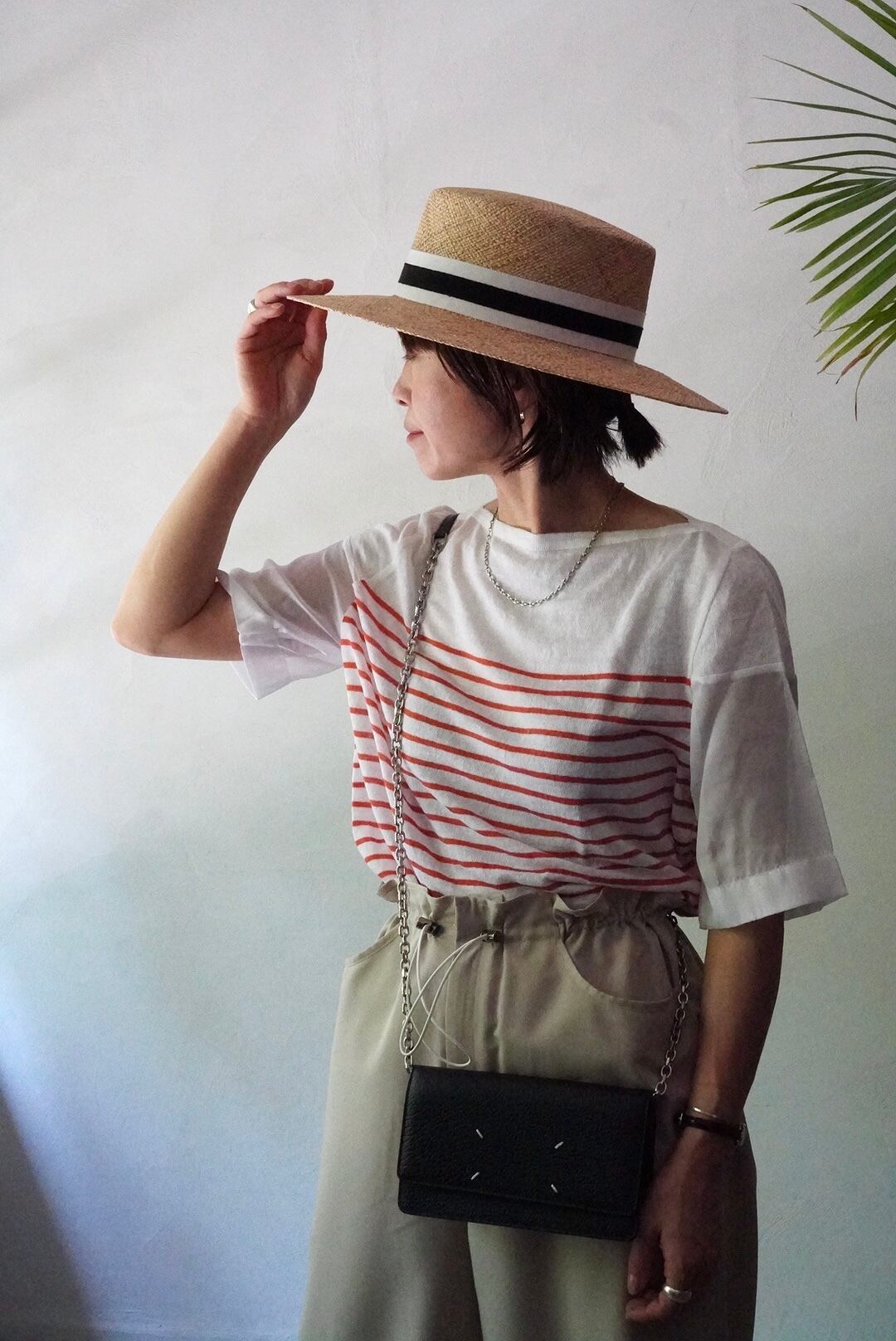 シルクの袖が軽やかでカジュアルかつエレガントなボーダースタイリングに。