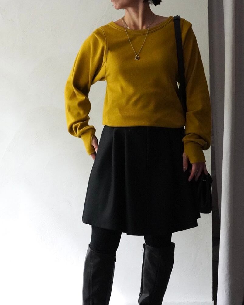 一枚でも素敵に着る事ができ、カーディガンやジャケットのインナーにも活躍します。