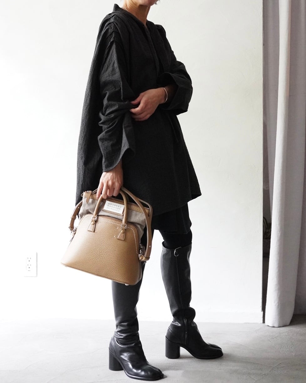ンドらしい生地が,贅沢に生地分量を用いたスモック。