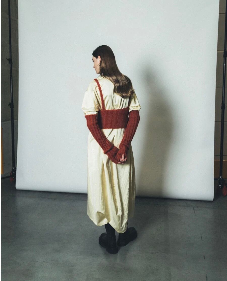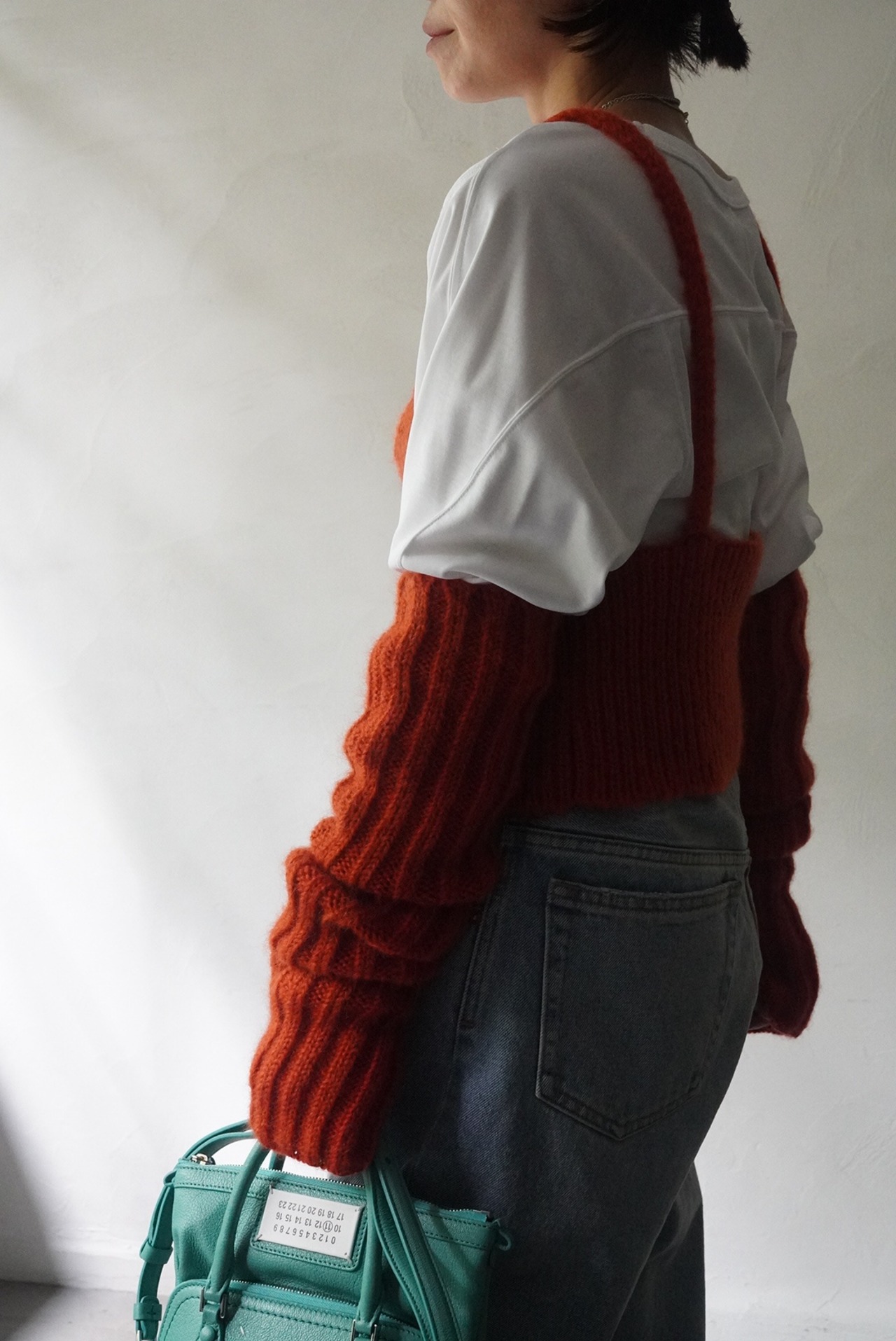 女性らしいシルエットに拘り、モヘア特有の柔らかな表情がコーディネートにアクセントを加えてくれる。アクセサリー感覚で着用することができ、同素材のアームカバーと合わせることでスタイリングの幅が広がる。