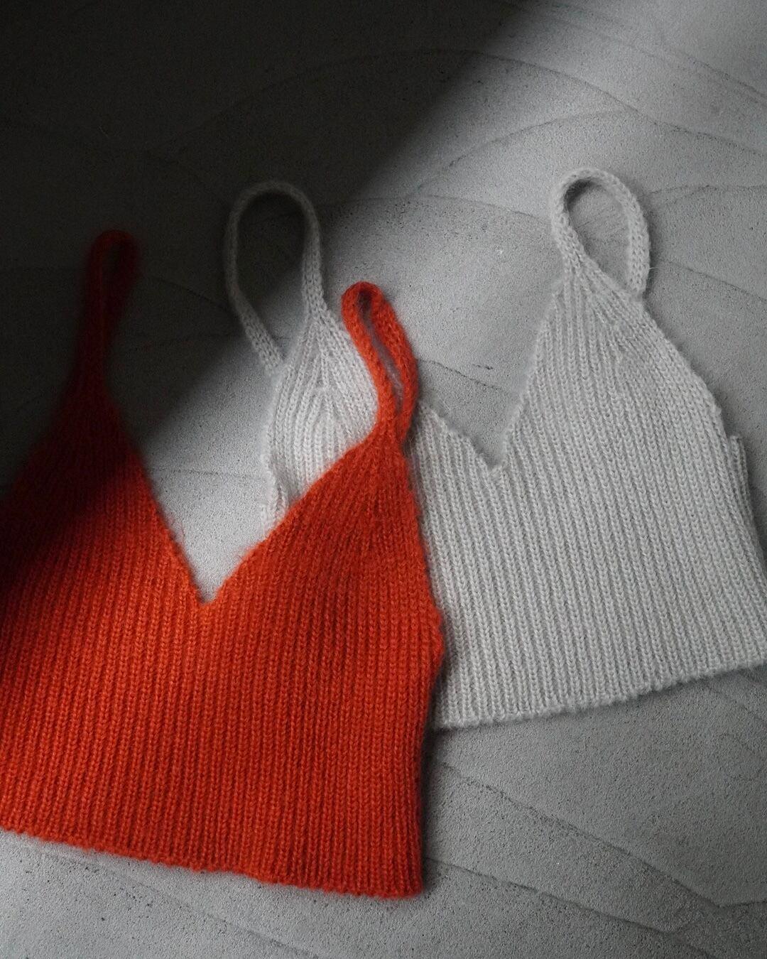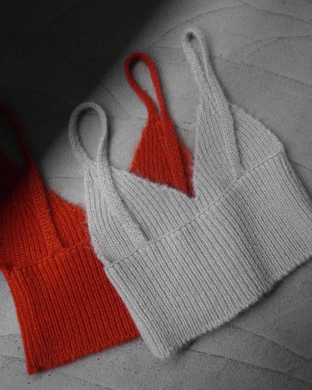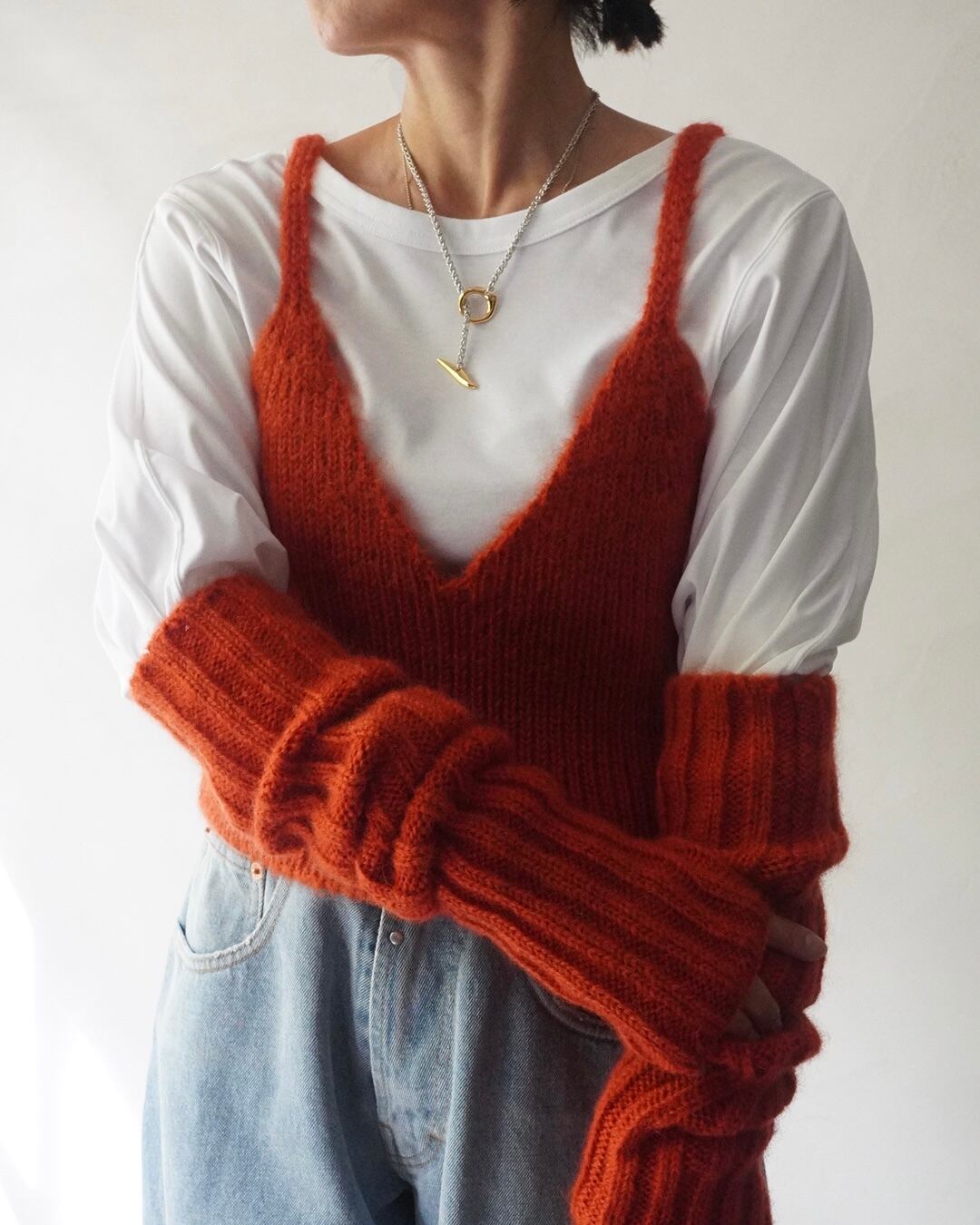 珍しい太番手のモヘアで編み立てられたキャミソール。