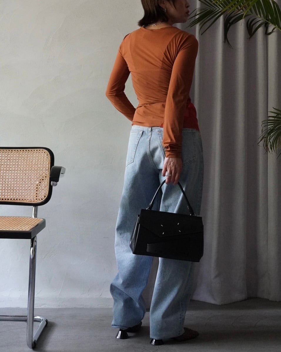 揺れ感、透け感の美しさ、着心地の良さに触れるとデザイナー自身の柔らかさをも感じれる一枚です。