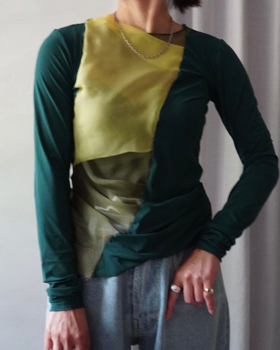 シルクとポリアミドの贅沢な素材をドッキングしたトップス。