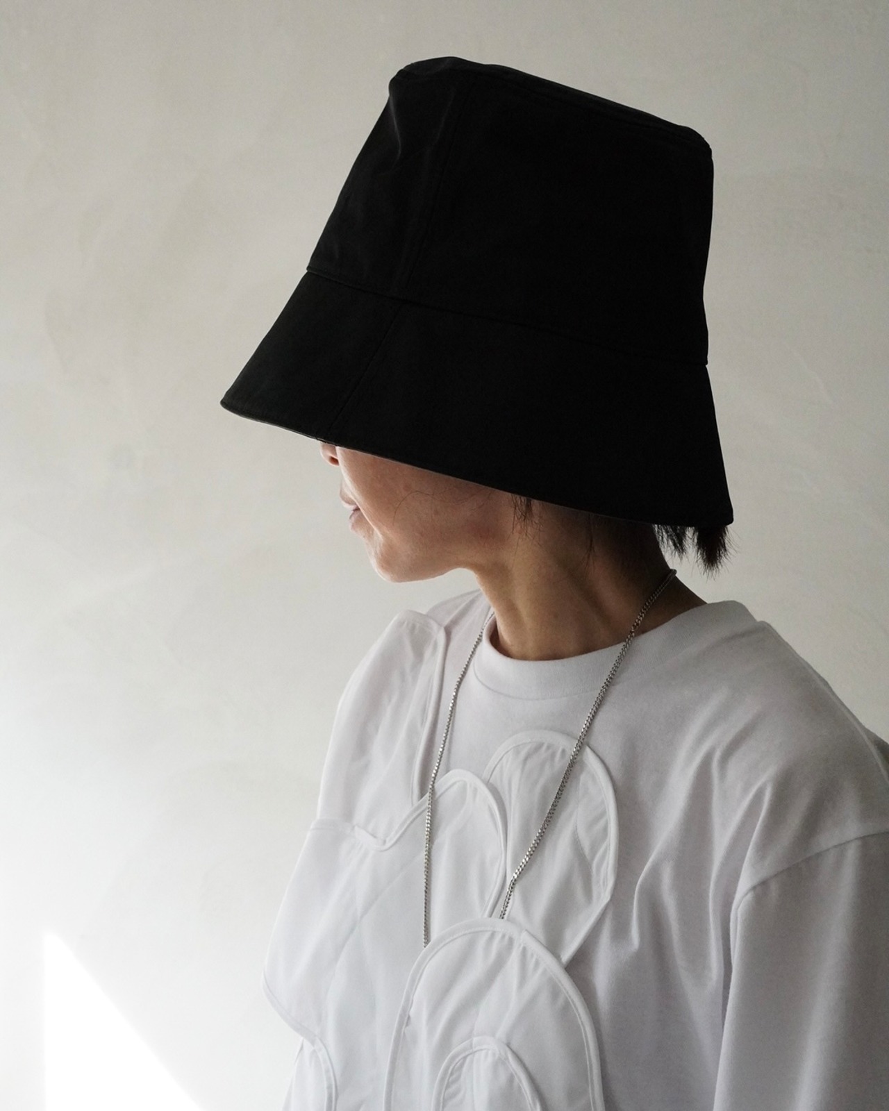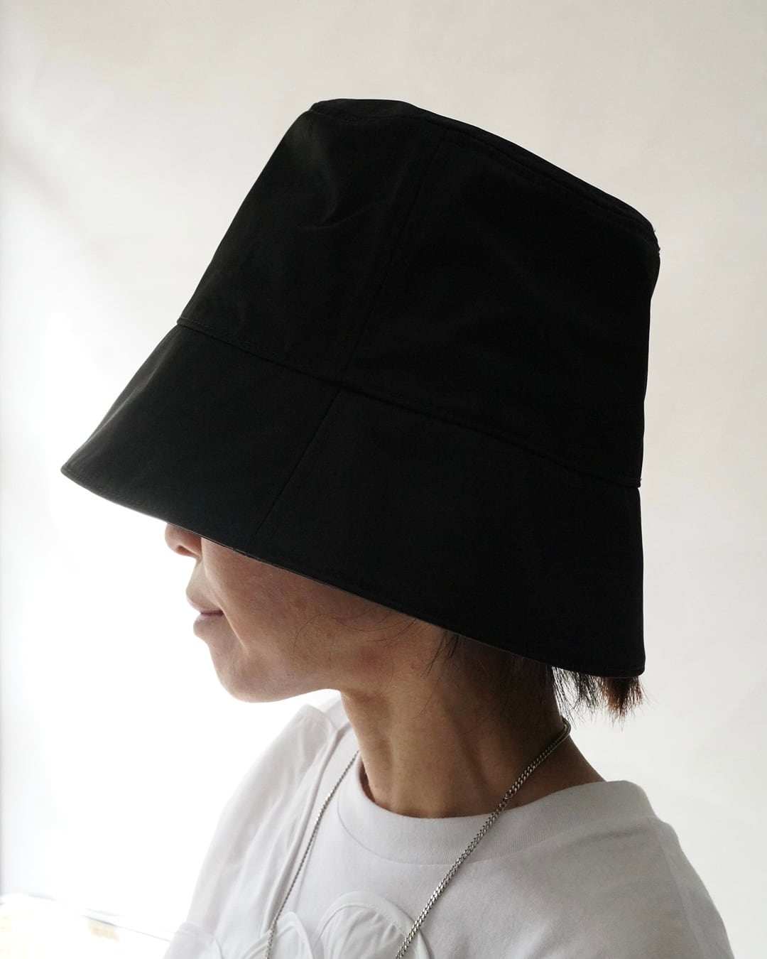 深みのある微光沢素材を使用したエレガントなバケットハットです。
