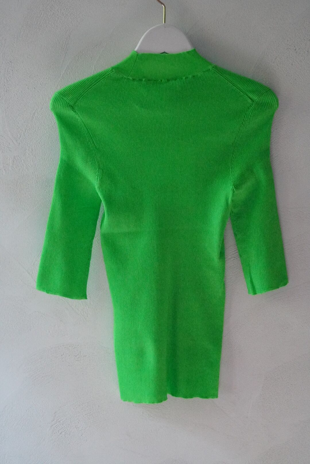 [ RIB STAND NECK HARF SLEEVE TOPS ]