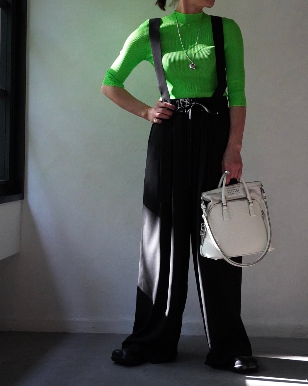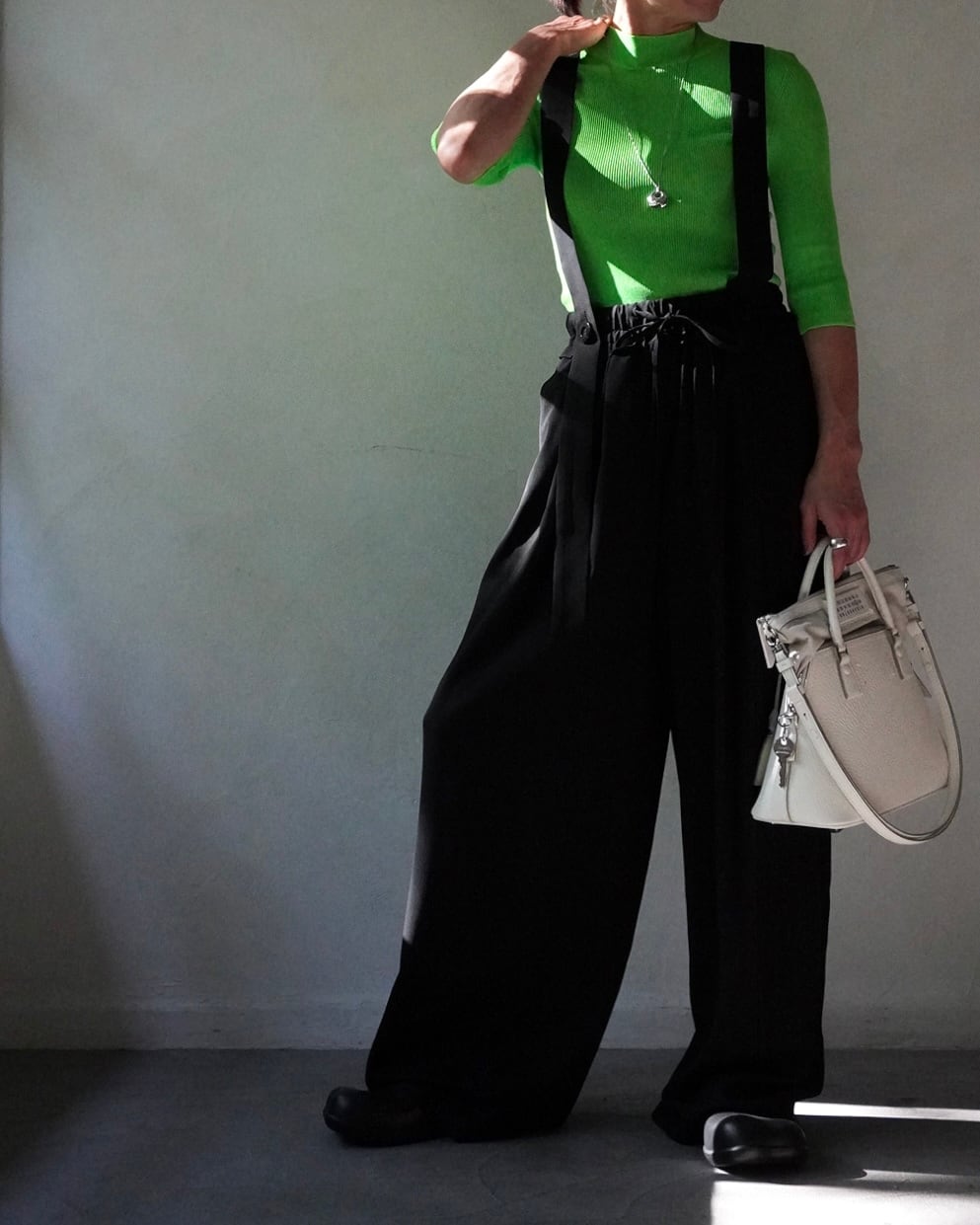 ストラップディティールを加えることで新鮮な見え方に。