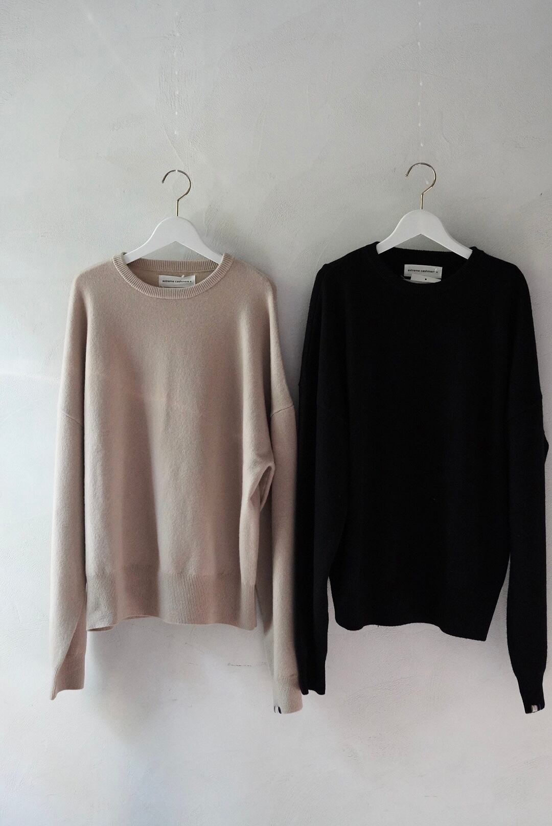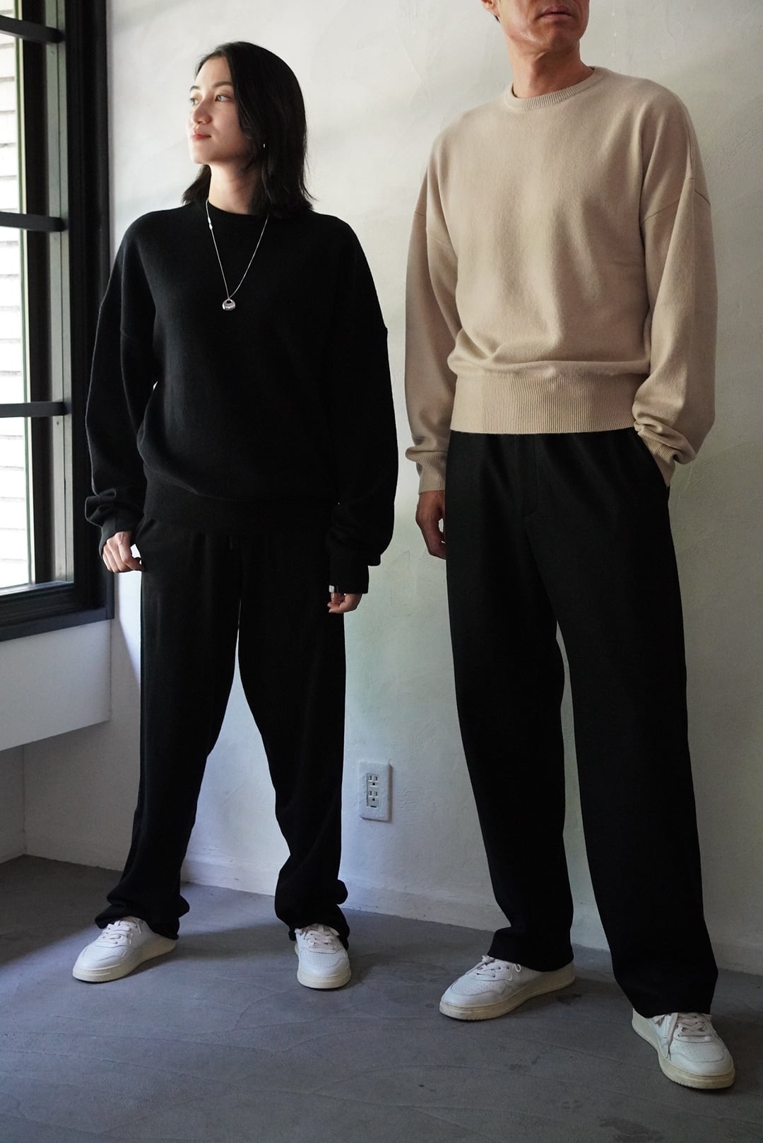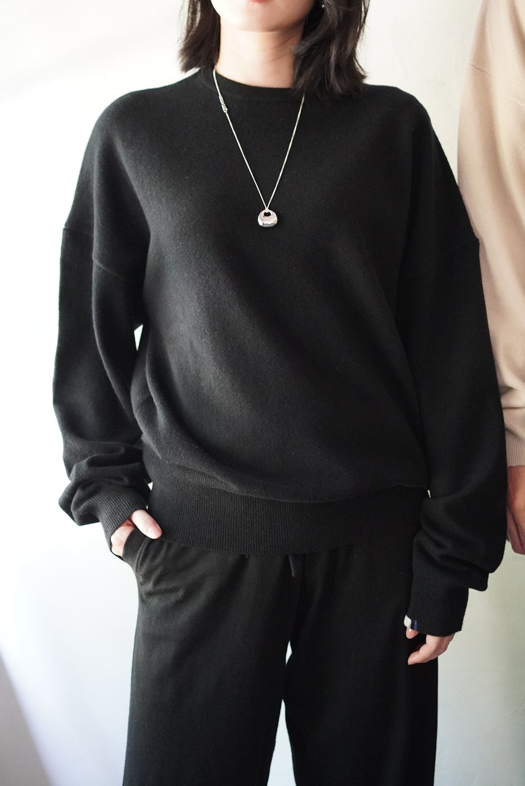 しっとりと滑らかでストレッチの効いたカシミア素材を使用したクルーネックニット。