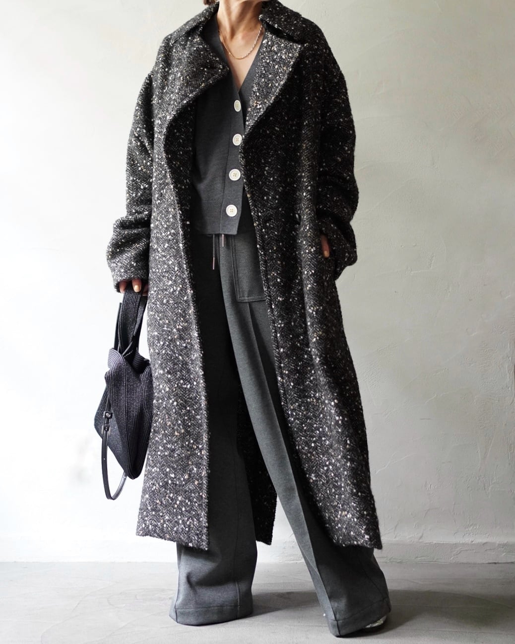 ロングシルエットですが、軽く柔らかいウールで包まれる冬のコート。