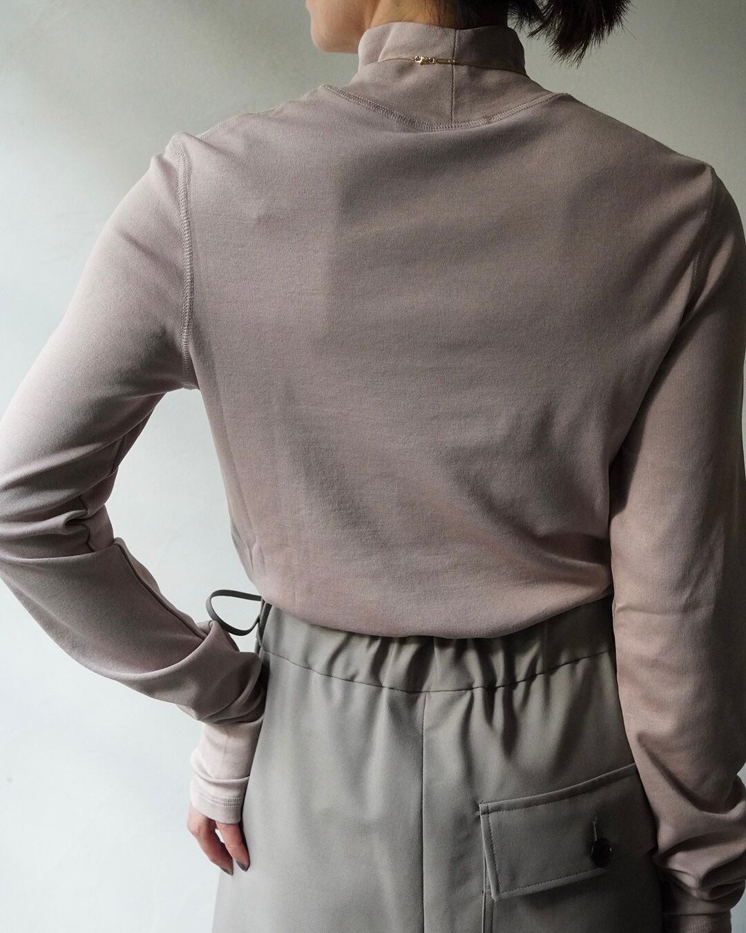 このアイテムはルメールのワードローブの定番です。柔軟なリブに織り込まれた中厚手のシルケットリブジャージーで作られています。体の輪郭に沿ってフィットし、タートルネックと長袖でミニマルなディテールを完成させています
