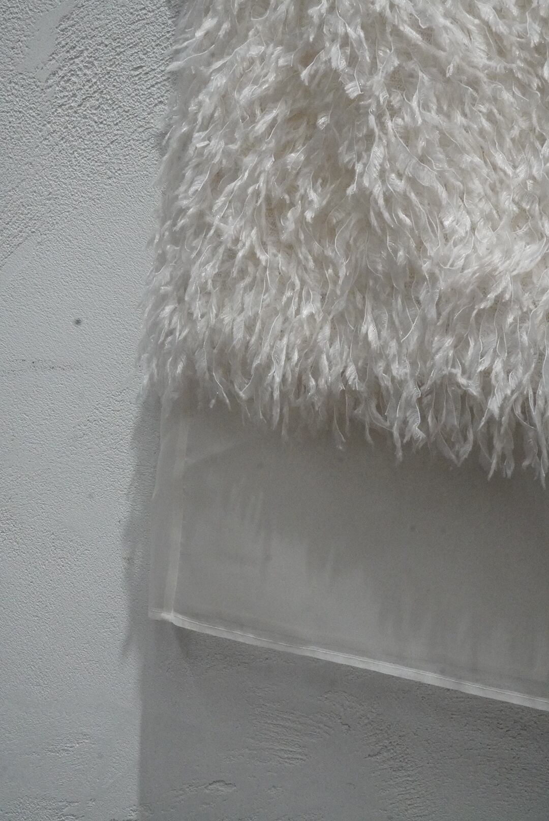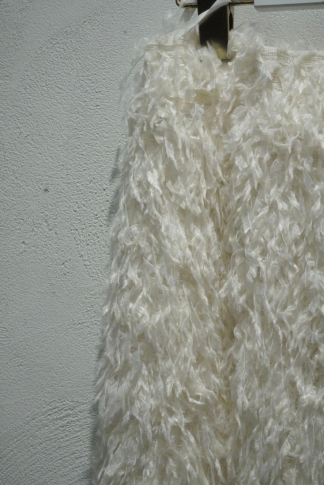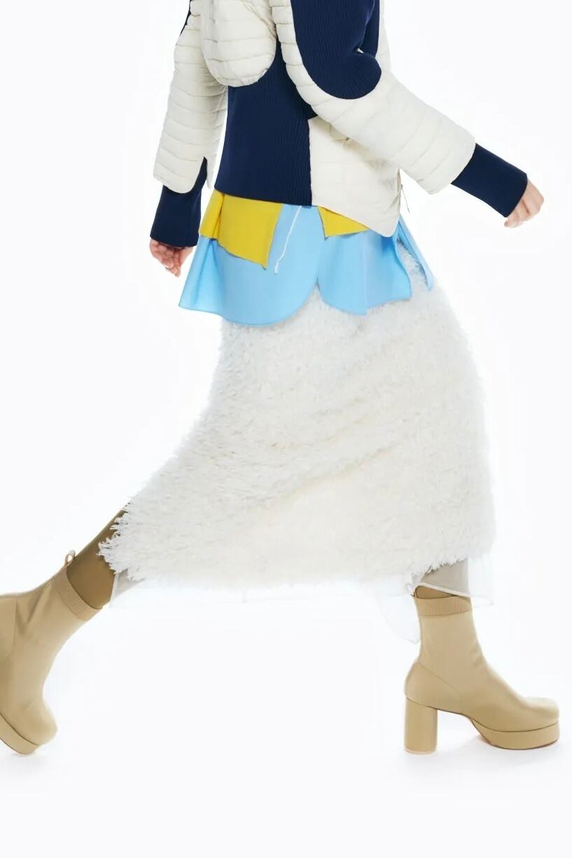 インパクトのあるフェザーニットを使ったペンシルスカート。
